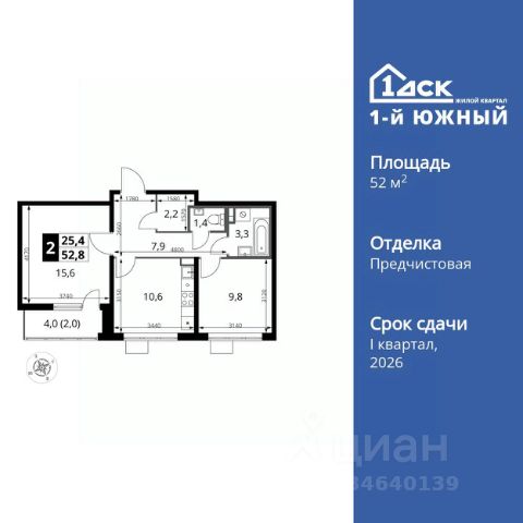 ТОЛЬКО 4 ДНЯ ДО 10.02 • Дополнительная скидка 10% • Ставка 10% по стандартной ипотеке для всех без наценок • Ставка 3,5% по семейной ипотеке Успейте купить выгодно! Прямая продажа от застройщика! Жилой Комплекс класса Комфорт Плюс. Продаётся 2-к квартира номер 493 общей площадью 52.7 кв.м. на 24-м этаже 24 этажного здания. Отделка Whitebox. Цена с учётом скидки. Особенности квартиры: - МЦД-5 в пешей доступности - Квартал с южным садом - Свои 3 детских сада и 2 большие школы - Просторная спальня, в которой можно разместить большую кровать. - Линейная планировка - максимальная функциональность и удобство. - Гостевой санузел - комфорт и удобство для ваших гостей. - Раздельный санузел - больше удобства для всех членов семьи. - Увеличенная высота потолков - ощущение простора и легкости. - Просторная мягкая зона - комфорт и уют для отдыха всей семьи. - Возможность добавить спальное место - дополнительный комфорт для гостей. - Гардеробная - удобство для хранения и организации вещей. - Просторная лоджия - идеальное место для уютных вечеров. Квартира с предчистовой отделкой (White box). Вам не придется заниматься черновыми и трудоёмкими работы, а чистовую отделку и дизайн - сделайте на свой вкус. Информация о комплексе: Одно из преимуществ проектов 1- ДСК большие застекленные лоджии. Другое преимущество честный евро-формат. Во всем проекте предусмотрена система Умный дом. В состав устанавливаемого пакета устройств входит: WiFi реле для управления группами потребителей, беспроводной кран перекрытия с эл. приводом, беспроводной сенсор протечки, Яндекс Станция Мини. Его расположение можно назвать удачным за счет транспортной доступности и близости к природным объектам. По соседству лес, а в каждом дворе плодовые деревья. Весной квартал окутывает бело-розовое облако: это цветут яблони, груши, сливы. К августу в воздух наполняется ароматом созревших плодов. Зимой среди покрытых инеем деревьев протянулась лыжня. Транспортная доступность: - Общественный транспорт: Действующая ж/д станция Булатниково (в перспективе будущая МДЦ D5) в пешей доступности, всего 10-12 минут. - Личный автотранспорт: Удобный выезд на трассу М4-Дон в сторону Москвы и области 850 м, до МКАД - 1 км Внутренняя инфраструктура: Красивые продуманные подъезды - еще одно преимущество проекта 1-й Южный. Вход в сквозные подъезды есть и с улицы, и со двора. Благодаря сплошному остеклению в них всегда светло и уютно. Подъезды расположены на уровне земли, поэтому и молодым родителям с коляской, и жильцам с ограниченными возможностями вход и выход неудобств не доставят. В помещении предусмотрено место под стойку ресепшен с выводом инженерных сетей. Если жильцы решат на общем собрании, что необходим охранник или консьерж, организовать для них рабочее место можно быстро и с минимальными затратами. В подъездах предусмотрены уборные для детей и взрослых. Колясочные в каждом подъезде позволяют поддерживать порядок и чистоту на этажах. На случай прогулки с