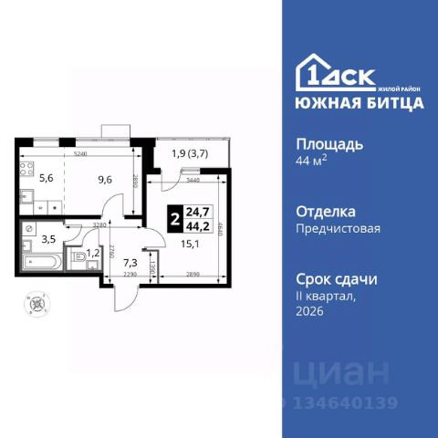 Прямая продажа от застройщика! Семейный жилой район класса Комфорт Плюс Продаётся 2-к квартира номер 246 общей площадью 52.9 кв.м. на 17-м этаже 24 этажного здания. Отделка Whitebox. Цена с учётом скидки. Особенности квартиры: - Линейная планировка - максимальная функциональность и удобство. - Раздельный санузел - больше удобства для всех членов семьи. - Просторная кухня - место для семейных ужинов и кулинарных экспериментов. - Гардеробная - удобство для хранения и организации вещей. - Лоджия - уютное место для отдыха и тишины. - Панорамное остекление лоджии - открывает вид на окружающий мир. Квартира с предчистовой отделкой (White box). Вам не придется заниматься черновыми и трудоёмкими работы, а чистовую отделку и дизайн - сделайте на свой вкус. Информация о комплексе: Сочетание свободного перемещения по внутреннней территории без машин и ощущения абсолютной безопасности благодаря надежным ограждениям - вот что отличает ЖК Южная Битца. На территории комплекса созданы все условия как для активного образа жизни, так и для спокойного времяпрепровождения. Свободно перемещайтесь по внутренней территории в безбарьерной среде! Продуманное зонирование во дворах позволяет отделить тихие зоны для родителей со спящими младенцами и тех, кто хочет почитать на свежем воздухе, от шумных игровых зон. Игровые зоны учитывают возраст детей. Площадки для детей старшего возраста вынесены за пределы дворов. Ощущение уютного дома должно начинаться с подъезда. Мы постарались предусмотреть все нюансы, чтобы наши лифты отвечали самым строгим современным требованиям. А наличие кладовых позволит вам поддерживать идеальный порядок и уют в вашей квартире! Транспортная доступность: В 3 км от МКАД в нескольких минутах езды до трех станций метро: Аннино, Бульвар Дмитрия Донского, улица Старокочаловская и станции МЦД2 - жд Бутово. Внутренняя инфраструктура: Для жителей жилого района "Южная Битца" доступна развитая инфраструктура близлежащих московских районов Чертаново, Южное, Бирюлёво Западное, Северное Бутово и Южное Бутово. Множество образовательных учреждений, объекты здравоохранения, торговые и развлекательные центры, кинотеатры, кафе, рестораны, парки.