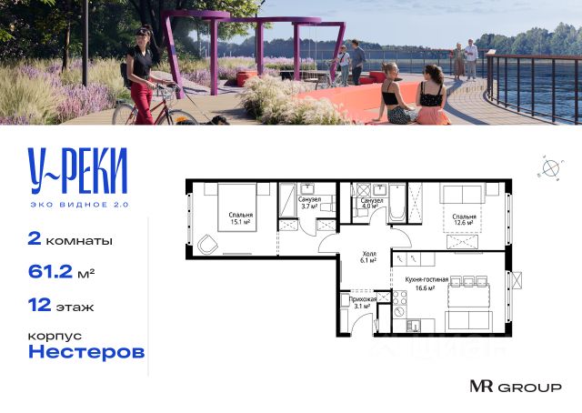 Прямая продажа от застройщика. Продаётся 2-комнатная квартира общей площадью 66.50 м² без отделки в ЖК "У реки. Эко Видное 2.0" на 17-м этаже 17 этажного корпуса Левитан. Все корпуса введены в эксплуатацию. Выдача ключей - II кв. 2025г. Семнадцатиэтажный корпус "Левитан" состоит из 13 секций, образующих в плане закрытый периметр двора. Эко-повестка и комфорт — это формат осознанной жизни, разработанный "Бюро А4" для благоустройства корпуса "Левитан". В проекте развиваются две темы: образ реки и настроения пейзажей Левитана которые раскрываются через четыре функциональные зоны. ЖК "У реки" — жилой микрорайон в Ленинском районе Подмосковья, в городе Видное. Архитектурные решения проекта разработаны бюро ADM, которое известно своими работами по созданию элитных объектов в столице. В проекте реализована продуманная европейская концепция благоустройства, включающая прогулочную набережную. О проекте: - 5 корпусов переменной этажности); - 8 км от МКАД, 30 минут до метро "Домодедовская", в 2025 года запланировано открытие станции МЦД-5 (дорога по Павелецкого вокзала займёт 30 минут); - Безопасные дворы с детскими и спортивными площадками для разных возрастов; - Собственная набережная с променадом, местами для пикников и рыбалки; - Два детских сада и школа на территории; - Развитая инфраструктура района; Компания MR Group предлагает своим клиентам специальные условия приобретения квартир в рамках программ ипотечного кредитования от банков-партнеров. Купить 2-комнатную квартиру в квартале Центральный в микрорайоне Купелинка.