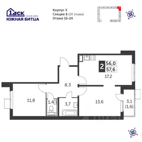 Прямая продажа от застройщика! Семейный жилой район класса Комфорт Плюс Продаётся 2-к квартира номер 432 общей площадью 59.5 кв.м. на 22-м этаже 22 этажного здания. Чистовая отделка. Особенности квартиры: - Распашная планировка - отличное сочетание удобства и свободы. - Гостевой санузел - комфорт и удобство для ваших гостей. - Раздельный санузел - больше удобства для всех членов семьи. - Просторная кухня - место для семейных ужинов и кулинарных экспериментов. - Гардеробная - удобство для хранения и организации вещей. - Ниша под шкаф - компактное и удобное место для вещей. - Лоджия - уютное место для отдыха и тишины. Информация о комплексе: Сочетание свободного перемещения по внутреннней территории без машин и ощущения абсолютной безопасности благодаря надежным ограждениям - вот что отличает ЖК Южная Битца. На территории комплекса созданы все условия как для активного образа жизни, так и для спокойного времяпрепровождения. Свободно перемещайтесь по внутренней территории в безбарьерной среде! Продуманное зонирование во дворах позволяет отделить тихие зоны для родителей со спящими младенцами и тех, кто хочет почитать на свежем воздухе, от шумных игровых зон. Игровые зоны учитывают возраст детей. Площадки для детей старшего возраста вынесены за пределы дворов. Ощущение уютного дома должно начинаться с подъезда. Мы постарались предусмотреть все нюансы, чтобы наши лифты отвечали самым строгим современным требованиям. А наличие кладовых позволит вам поддерживать идеальный порядок и уют в вашей квартире! Транспортная доступность: В 3 км от МКАД в нескольких минутах езды до трех станций метро: Аннино, Бульвар Дмитрия Донского, улица Старокочаловская и станции МЦД2 - жд Бутово. Внутренняя инфраструктура: Для жителей жилого района "Южная Битца" доступна развитая инфраструктура близлежащих московских районов Чертаново, Южное, Бирюлёво Западное, Северное Бутово и Южное Бутово. Множество образовательных учреждений, объекты здравоохранения, торговые и развлекательные центры, кинотеатры, кафе, рестораны, парки.