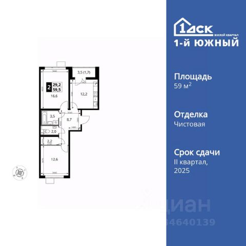 Прямая продажа от застройщика! Жилой Комплекс класса Комфорт Плюс. Продаётся 2-к квартира номер 314 общей площадью 59.5 кв.м. на 22-м этаже 25 этажного дома. Чистовая отделка. Цена с учётом скидки! Особенности квартиры: - МЦД-5 в пешей доступности - Квартал с южным садом - Свои 3 детских сада и 2 большие школы - Просторная спальня, в которой можно разместить большую кровать. - Линейная планировка - максимальная функциональность и удобство. - Гостевой санузел - комфорт и удобство для ваших гостей. - Раздельный санузел - больше удобства для всех членов семьи. - Просторная кухня - место для семейных ужинов и кулинарных экспериментов. - Просторная мягкая зона - комфорт и уют для отдыха всей семьи. - Возможность добавить спальное место - дополнительный комфорт для гостей. - Гардеробная - удобство для хранения и организации вещей. - Ниша под шкаф - компактное и удобное место для вещей. - Лоджия - уютное место для отдыха и тишины. Информация о комплексе: Одно из преимуществ проектов 1- ДСК большие застекленные лоджии. Другое преимущество честный евро-формат. Во всем проекте предусмотрена система Умный дом. В состав устанавливаемого пакета устройств входит: WiFi реле для управления группами потребителей, беспроводной кран перекрытия с эл. приводом, беспроводной сенсор протечки, Яндекс Станция Мини. Его расположение можно назвать удачным за счет транспортной доступности и близости к природным объектам. По соседству лес, а в каждом дворе плодовые деревья. Весной квартал окутывает бело-розовое облако: это цветут яблони, груши, сливы. К августу в воздух наполняется ароматом созревших плодов. Зимой среди покрытых инеем деревьев протянулась лыжня. Транспортная доступность: - Общественный транспорт: Действующая ж/д станция Булатниково (в перспективе будущая МДЦ D5) в пешей доступности, всего 10-12 минут. - Личный автотранспорт: Удобный выезд на трассу М4-Дон в сторону Москвы и области 850 м, до МКАД - 1 км Внутренняя инфраструктура: Красивые продуманные подъезды - еще одно преимущество проекта 1-й Южный. Вход в сквозные подъезды есть и с улицы, и со двора. Благодаря сплошному остеклению в них всегда светло и уютно. Подъезды расположены на уровне земли, поэтому и молодым родителям с коляской, и жильцам с ограниченными возможностями вход и выход неудобств не доставят. В помещении предусмотрено место под стойку ресепшен с выводом инженерных сетей. Если жильцы решат на общем собрании, что необходим охранник или консьерж, организовать для них рабочее место можно быстро и с минимальными затратами. В подъездах предусмотрены уборные для детей и взрослых. Колясочные в каждом подъезде позволяют поддерживать порядок и чистоту на этажах. На случай прогулки с четвероногим питомцем в непогоду в подъездах устроены лапомойки. Во дворах и на общественных территориях 1-ого Южного столько всего интересного для юных обитателей. Собственные 3 детских сада и 2 больших школы буквально под окнами Изюминка проекта - пешеходный бульвар-дендра