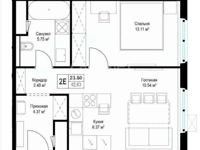 Квартира площадью 36,3 м²: кухня 13 м² с возможностью обустройства обеденной зоны, изолированная комната 18 м² с хорошим естественным освещением. Высота потолков 2,8 м добавляет ощущение простора, а косметический ремонт позволяет заехать сразу после покупки или адаптировать интерьер под свой вкус. Квартира продается без мебели.
