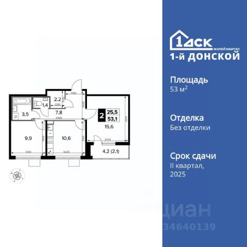 Продаётся 2-к квартира номер 218 общей площадью 53.1 кв.м. на 11-м этаже 24 этажного здания. Отделка Whitebox. Цена с учётом скидки.