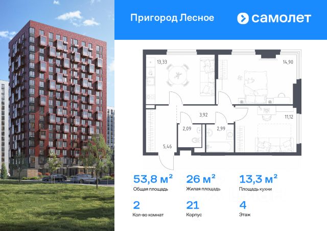 Строим кварталы для жизни с заботой о будущем. Предлагается 2-комнатная квартира комфорт-класса 50,82 кв.м в корпусе 21 на 6 этаже, в ЖК "Пригород Лесное" Квартира без отделки. Доступность опции "отделка" и возможность комплектации мебелью и декором уточняйте у застройщика. Приобрести квартиру возможно по специальным акциям от застройщика, с текущими условиями акций можно ознакомиться в блоке "Акций". Цена динамическая и может отличаться, уточняйте актуальность у застройщика. Жилой комплекс "Пригород Лесное" находится в 7 км от МКАДа. Все корпуса проекта не выше 17 этажей, в отделке фасадов используется кирпич в природных оттенках: сером, коричневом, черном и белом. Жизнь рядом с лесом — это новые впечатления каждый день. Здесь можно устраивать пикники на солнечных лужайках, ходить за ягодами, кататься на велосипедах по извилистым дорожкам. Для жителей — собственные детские сады и школы, поликлиника и больница, паркинги подземные с зарядками для электрокаров, отдельные многоэтажные паркинги и плоскостные парковки. Стройте комфортную и счастливую жизнь в "Пригороде Лесное" уже сейчас. "Пригород Лесное" — это: 1. 15 минут на автомобиле до станции метро "Домодедовская" и 12 минут на автомобиле до МКАДа 2. 8 минут на автомобиле до Каширского шоссе и трассы А-105 3. Коробовский и Богдановский лес, река Пахра и Большой Людовинский пруд у дома 4. Экомаршрут в Коробовском лесопарке рядом с домом, который соединит кварталы: "Пригород Лесное", "Горки Парк" и "Богдановский Лес" 5. Выход в лес по благоустроенным экотропам 6. Уже открыто 3 школы, 5 детских садов и поликлиника 7. Запланированные 17 детских садов и 9 школ, поликлиника и больница 8. Запланированное строительство культурно-досугового и торгового центра, спортивный комплекс и бассейн 9. Детские площадки с безопасным покрытием и велодорожки на территории проекта 10. Собственный ландшафтный парк и бульвар 11. Спортхаб на территории проекта 12. Паркинги: подземные с зарядками для электрокаров, отдельные многоэтажные и плоскостные 13. Колясочные и кладовые помещения