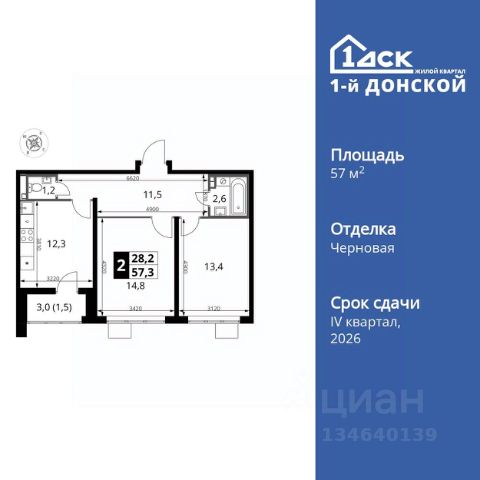 Прямая продажа от застройщика! Жилой Комплекс класса Комфорт Плюс. Продаётся 2-к квартира номер 920 общей площадью 57.3 кв.м. на 24-м этаже 24 этажного дома. Отделка Whitebox. Особенности квартиры: - МЦД-5 в пешей доступности - Квартал с собственной набережной - Свои 2 детских сада и школа - Просторная спальня, в которой можно разместить большую кровать. - Линейная планировка - максимальная функциональность и удобство. - Раздельный санузел - больше удобства для всех членов семьи. - Увеличенная высота потолков - ощущение простора и легкости. - Линейная кухня - функциональность и практичность в одном решении. - Лоджия - уютное место для отдыха и тишины. Квартира с предчистовой отделкой (White box). Вам не придется заниматься черновыми и трудоёмкими работы, а чистовую отделку и дизайн - сделайте на свой вкус. Информация о комплексе: Комплекс 1-й Донской расположен в 7 км от МКАД по трассе М-4 Дон. В нем сочетаются все плюсы комфортной городской среды и природного окружения. В проекте достаточно большой процент квартир, выходящих на 2-3 стороны света. Секции-маяки формируют у зданий визуальную L-форму, что придает застройке структуру и ритмику объемов. На ощущение динамики работает и разная этажность зданий. Теплая цветовая палитра фасадов отражает природу Дона. Вечерами дома преображаются благодаря архитектурной подсветке, выгодно выделяясь на городском фоне. Природа оказывает положительное влияние на человека на всех уровнях восприятия: через зрение, запахи, звуки, тактильные ощущения. Неподалеку от ЖК Первый Донской: Ермолинский парк, Видновский лесопарк, Жуковский парк Транспортная доступность: Комплекс удобно расположен в 7 км от МКАД по трассе М-4 Дон (через Видное). Расстояние до Каширского шоссе составляет 12 км. Добраться до метро и центра Москвы позволяет развитая сеть маршрутов общественного наземного транспорта. Действующая ж/д станция Калинина Павелецкого направления в 15-17 минутах ходьбы (МЦД-5 в 2025-2026 гг). Внутренняя инфраструктура: Проект 1-й Донской соседствует с бурно развивающимся районом, основная инфраструктура которого уже сложилась. В строительстве современных жилых комплексов в округе есть свои плюсы: здесь формируется продуманная и комфортная городская среда. Что касается внутренней инфраструктуры, на территории квартала будут расположены собственные муниципальные 2 детских садика и школа, которые помогут совместить приятное с полезным. Территория комплекса пронизана целой сетью живописных пешеходных маршрутов, позволяющих попасть в любой уголок района. Основные пути, как водится, "торговые". Они проходят вдоль магазинов, кафе и других представителей коммерции и отделяются от проезжей части зеленой "фито" - стеной. Среди крупных социальных объектов предусмотрены своя поликлиника и торговый центр с примыкающей площадью для общественных мероприятий. Уют начинается с продуманного подъезда. Сквозные подъезды наполнены светом благодаря сплошному остеклению. Вход в них есть и с улицы