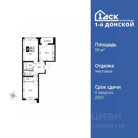Прямая продажа от застройщика! Жилой Комплекс класса Комфорт Плюс. Продаётся 2-к квартира номер 271 общей площадью 58.5 кв.м. на 17-м этаже 24 этажного дома. Чистовая отделка. Цена с учётом скидки! Особенности квартиры: - МЦД-5 в пешей доступности - Квартал с собственной набережной - Свои 2 детских сада и школа - Раздельный санузел - больше удобства для всех членов семьи. - Просторная кухня - место для семейных ужинов и кулинарных экспериментов. - Просторная мягкая зона - комфорт и уют для отдыха всей семьи. - Возможность добавить спальное место - дополнительный комфорт для гостей. - Гардеробная - удобство для хранения и организации вещей. - Ниша под шкаф - компактное и удобное место для вещей. - Лоджия - уютное место для отдыха и тишины. Информация о комплексе: Комплекс 1-й Донской расположен в 7 км от МКАД по трассе М-4 Дон. В нем сочетаются все плюсы комфортной городской среды и природного окружения. В проекте достаточно большой процент квартир, выходящих на 2-3 стороны света. Секции-маяки формируют у зданий визуальную L-форму, что придает застройке структуру и ритмику объемов. На ощущение динамики работает и разная этажность зданий. Теплая цветовая палитра фасадов отражает природу Дона. Вечерами дома преображаются благодаря архитектурной подсветке, выгодно выделяясь на городском фоне. Природа оказывает положительное влияние на человека на всех уровнях восприятия: через зрение, запахи, звуки, тактильные ощущения. Неподалеку от ЖК Первый Донской: Ермолинский парк, Видновский лесопарк, Жуковский парк Транспортная доступность: Комплекс удобно расположен в 7 км от МКАД по трассе М-4 Дон (через Видное). Расстояние до Каширского шоссе составляет 12 км. Добраться до метро и центра Москвы позволяет развитая сеть маршрутов общественного наземного транспорта. Действующая ж/д станция Калинина Павелецкого направления в 15-17 минутах ходьбы (МЦД-5 в 2025-2026 гг). Внутренняя инфраструктура: Проект 1-й Донской соседствует с бурно развивающимся районом, основная инфраструктура которого уже сложилась. В строительстве современных жилых комплексов в округе есть свои плюсы: здесь формируется продуманная и комфортная городская среда. Что касается внутренней инфраструктуры, на территории квартала будут расположены собственные муниципальные 2 детских садика и школа, которые помогут совместить приятное с полезным. Территория комплекса пронизана целой сетью живописных пешеходных маршрутов, позволяющих попасть в любой уголок района. Основные пути, как водится, "торговые". Они проходят вдоль магазинов, кафе и других представителей коммерции и отделяются от проезжей части зеленой "фито" - стеной. Среди крупных социальных объектов предусмотрены своя поликлиника и торговый центр с примыкающей площадью для общественных мероприятий. Уют начинается с продуманного подъезда. Сквозные подъезды наполнены светом благодаря сплошному остеклению. Вход в них есть и с улицы, и со двора.