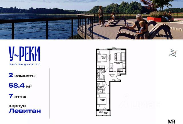 Прямая продажа от застройщика. Продаётся 2-комнатная квартира общей площадью 58.40 м² без отделки в ЖК "У реки. Эко Видное 2.0" на 7-м этаже 17 этажного корпуса Левитан. Все корпуса введены в эксплуатацию. Выдача ключей - II кв. 2025г. Семнадцатиэтажный корпус "Левитан" состоит из 13 секций, образующих в плане закрытый периметр двора. Эко-повестка и комфорт — это формат осознанной жизни, разработанный "Бюро А4" для благоустройства корпуса "Левитан". В проекте развиваются две темы: образ реки и настроения пейзажей Левитана которые раскрываются через четыре функциональные зоны. ЖК "У реки" — жилой микрорайон в Ленинском районе Подмосковья, в городе Видное. Архитектурные решения проекта разработаны бюро ADM, которое известно своими работами по созданию элитных объектов в столице. В проекте реализована продуманная европейская концепция благоустройства, включающая прогулочную набережную. О проекте: - 5 корпусов переменной этажности); - 8 км от МКАД, 30 минут до метро "Домодедовская", в 2025 года запланировано открытие станции МЦД-5 (дорога по Павелецкого вокзала займёт 30 минут); - Безопасные дворы с детскими и спортивными площадками для разных возрастов; - Собственная набережная с променадом, местами для пикников и рыбалки; - Два детских сада и школа на территории; - Развитая инфраструктура района; Компания MR предлагает своим клиентам специальные условия приобретения квартир в рамках программ ипотечного кредитования от банков-партнеров.