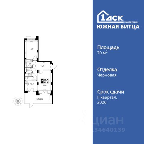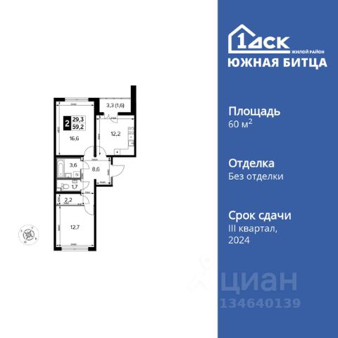 Прямая продажа от застройщика! Семейный жилой район класса Комфорт Плюс Продаётся 2-к квартира номер 340 общей площадью 60.5 кв.м. на 17-м этаже 24 этажного дома. Без отделки. Цена с учётом скидки! Особенности квартиры: - Раздельный санузел - больше удобства для всех членов семьи. - Просторная кухня - место для семейных ужинов и кулинарных экспериментов. - Гардеробная - удобство для хранения и организации вещей. - Ниша под шкаф - компактное и удобное место для вещей. - Лоджия - уютное место для отдыха и тишины. - Панорамное остекление лоджии - открывает вид на окружающий мир. Информация о комплексе: Сочетание свободного перемещения по внутреннней территории без машин и ощущения абсолютной безопасности благодаря надежным ограждениям - вот что отличает ЖК Южная Битца. На территории комплекса созданы все условия как для активного образа жизни, так и для спокойного времяпрепровождения. Свободно перемещайтесь по внутренней территории в безбарьерной среде! Продуманное зонирование во дворах позволяет отделить тихие зоны для родителей со спящими младенцами и тех, кто хочет почитать на свежем воздухе, от шумных игровых зон. Игровые зоны учитывают возраст детей. Площадки для детей старшего возраста вынесены за пределы дворов. Ощущение уютного дома должно начинаться с подъезда. Мы постарались предусмотреть все нюансы, чтобы наши лифты отвечали самым строгим современным требованиям. А наличие кладовых позволит вам поддерживать идеальный порядок и уют в вашей квартире! Транспортная доступность: В 3 км от МКАД в нескольких минутах езды до трех станций метро: Аннино, Бульвар Дмитрия Донского, улица Старокочаловская и станции МЦД2 - жд Бутово. Внутренняя инфраструктура: Для жителей жилого района "Южная Битца" доступна развитая инфраструктура близлежащих московских районов Чертаново, Южное, Бирюлёво Западное, Северное Бутово и Южное Бутово. Множество образовательных учреждений, объекты здравоохранения, торговые и развлекательные центры, кинотеатры, кафе, рестораны, парки. Купить 2-комнатную квартиру первичка в поселке Битца Московской области.