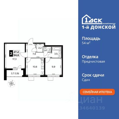 Прямая продажа от застройщика! Жилой Комплекс класса Комфорт Плюс. Продаётся 2-к квартира номер 61 общей площадью 59.4 кв.м. на 9-м этаже 14 этажного здания. Предчистовая отделка. Цена с учётом скидки. Особенности квартиры: - МЦД-5 в пешей доступности - Квартал с собственной набережной - Свои 2 детских сада и школа - Просторная спальня, в которой можно разместить большую кровать. - Раздельный санузел - больше удобства для всех членов семьи. - Просторная кухня - место для семейных ужинов и кулинарных экспериментов. - Просторная мягкая зона - комфорт и уют для отдыха всей семьи. - Возможность добавить спальное место - дополнительный комфорт для гостей. - Гардеробная - удобство для хранения и организации вещей. - Лоджия - уютное место для отдыха и тишины. Квартира с предчистовой отделкой (White box). Вам не придется заниматься черновыми и трудоёмкими работы, а чистовую отделку и дизайн - сделайте на свой вкус. Информация о комплексе: Комплекс 1-й Донской расположен в 7 км от МКАД по трассе М-4 Дон. В нем сочетаются все плюсы комфортной городской среды и природного окружения. В проекте достаточно большой процент квартир, выходящих на 2-3 стороны света. Секции-маяки формируют у зданий визуальную L-форму, что придает застройке структуру и ритмику объемов. На ощущение динамики работает и разная этажность зданий. Теплая цветовая палитра фасадов отражает природу Дона. Вечерами дома преображаются благодаря архитектурной подсветке, выгодно выделяясь на городском фоне. Природа оказывает положительное влияние на человека на всех уровнях восприятия: через зрение, запахи, звуки, тактильные ощущения. Неподалеку от ЖК Первый Донской: Ермолинский парк, Видновский лесопарк, Жуковский парк Транспортная доступность: Комплекс удобно расположен в 7 км от МКАД по трассе М-4 Дон (через Видное). Расстояние до Каширского шоссе составляет 12 км. Добраться до метро и центра Москвы позволяет развитая сеть маршрутов общественного наземного транспорта. Действующая ж/д станция Калинина Павелецкого направления в 15-17 минутах ходьбы (МЦД-5 в 2025-2026 гг). Внутренняя инфраструктура: Проект 1-й Донской соседствует с бурно развивающимся районом, основная инфраструктура которого уже сложилась. В строительстве современных жилых комплексов в округе есть свои плюсы: здесь формируется продуманная и комфортная городская среда. Что касается внутренней инфраструктуры, на территории квартала будут расположены собственные муниципальные 2 детских садика и школа, которые помогут совместить приятное с полезным. Территория комплекса пронизана целой сетью живописных пешеходных маршрутов, позволяющих попасть в любой уголок района. Основные пути, как водится, "торговые". Они проходят вдоль магазинов, кафе и других представителей коммерции и отделяются от проезжей части зеленой "фито" - стеной. Среди крупных социальных объектов предусмотрены своя поликлиника и торговый центр с примыкающей площадью для общественных мероприятий. Уют начинается с продуманног