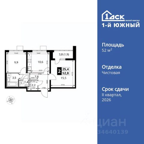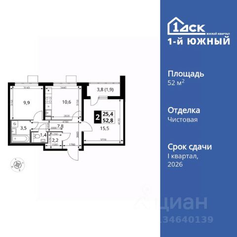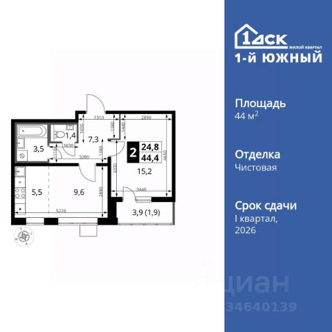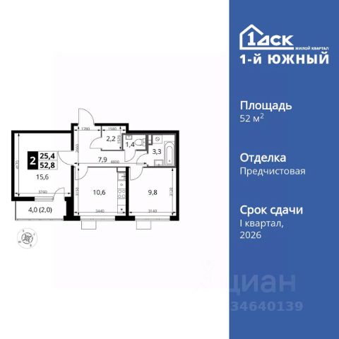 Прямая продажа от застройщика! Жилой Комплекс класса Комфорт Плюс. Продаётся 2-к квартира номер 480 общей площадью 52.7 кв.м. на 15-м этаже 24 этажного здания. Отделка Whitebox. Цена с учётом скидки. Особенности квартиры: - МЦД-5 в пешей доступности - Квартал с южным садом - Свои 3 детских сада и 2 большие школы - Линейная планировка - максимальная функциональность и удобство. - Раздельный санузел - больше удобства для всех членов семьи. - Линейная кухня - функциональность и практичность в одном решении. - Гардеробная - удобство для хранения и организации вещей. - Лоджия - уютное место для отдыха и тишины. Квартира с предчистовой отделкой (White box). Вам не придется заниматься черновыми и трудоёмкими работы, а чистовую отделку и дизайн - сделайте на свой вкус. Информация о комплексе: Одно из преимуществ проектов 1- ДСК большие застекленные лоджии. Другое преимущество честный евро-формат. Во всем проекте предусмотрена система Умный дом. В состав устанавливаемого пакета устройств входит: WiFi реле для управления группами потребителей, беспроводной кран перекрытия с эл. приводом, беспроводной сенсор протечки, Яндекс Станция Мини. Его расположение можно назвать удачным за счет транспортной доступности и близости к природным объектам. По соседству лес, а в каждом дворе плодовые деревья. Весной квартал окутывает бело-розовое облако: это цветут яблони, груши, сливы. К августу в воздух наполняется ароматом созревших плодов. Зимой среди покрытых инеем деревьев протянулась лыжня. Транспортная доступность: - Общественный транспорт: Действующая ж/д станция Булатниково (в перспективе будущая МДЦ D5) в пешей доступности, всего 10-12 минут. - Личный автотранспорт: Удобный выезд на трассу М4-Дон в сторону Москвы и области 850 м, до МКАД - 1 км Внутренняя инфраструктура: Красивые продуманные подъезды - еще одно преимущество проекта 1-й Южный. Вход в сквозные подъезды есть и с улицы, и со двора. Благодаря сплошному остеклению в них всегда светло и уютно. Подъезды расположены на уровне земли, поэтому и молодым родителям с коляской, и жильцам с ограниченными возможностями вход и выход неудобств не доставят. В помещении предусмотрено место под стойку ресепшен с выводом инженерных сетей. Если жильцы решат на общем собрании, что необходим охранник или консьерж, организовать для них рабочее место можно быстро и с минимальными затратами. В подъездах предусмотрены уборные для детей и взрослых. Колясочные в каждом подъезде позволяют поддерживать порядок и чистоту на этажах. На случай прогулки с четвероногим питомцем в непогоду в подъездах устроены лапомойки. Во дворах и на общественных территориях 1-ого Южного столько всего интересного для юных обитателей. Собственные 3 детских сада и 2 больших школы буквально под окнами Изюминка проекта - пешеходный бульвар-дендрарий, он идеален для семейных прогулок. По сторонам прогулочной зоны разместились точки для самых разнообразных активностей. Центральная площадь на бульваре предназначен