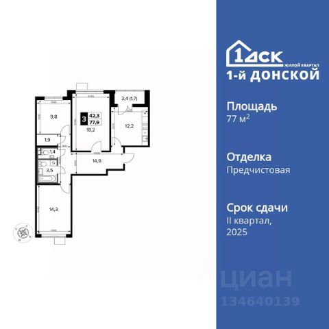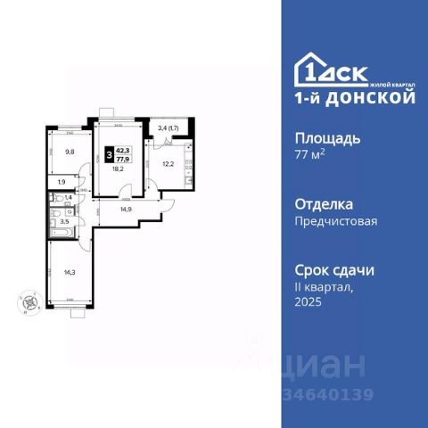 Прямая продажа от застройщика! Жилой Комплекс класса Комфорт Плюс. Продаётся 3-к квартира номер 379 общей площадью 77.9 кв.м. на 21-м этаже 24 этажного здания. Отделка Whitebox. Цена с учётом скидки. Особенности квартиры: - МЦД-5 в пешей доступности - Квартал с собственной набережной - Свои 2 детских сада и школа - Просторная спальня, в которой можно разместить большую кровать. - Гостевой санузел - комфорт и удобство для ваших гостей. - Просторная кухня - место для семейных ужинов и кулинарных экспериментов. - Просторная мягкая зона - комфорт и уют для отдыха всей семьи. - Возможность добавить спальное место - дополнительный комфорт для гостей. - Гардеробная - удобство для хранения и организации вещей. - Ниша под шкаф - компактное и удобное место для вещей. - Лоджия - уютное место для отдыха и тишины. Квартира с предчистовой отделкой (White box). Вам не придется заниматься черновыми и трудоёмкими работы, а чистовую отделку и дизайн - сделайте на свой вкус. Информация о комплексе: Комплекс 1-й Донской расположен в 7 км от МКАД по трассе М-4 Дон. В нем сочетаются все плюсы комфортной городской среды и природного окружения. В проекте достаточно большой процент квартир, выходящих на 2-3 стороны света. Секции-маяки формируют у зданий визуальную L-форму, что придает застройке структуру и ритмику объемов. На ощущение динамики работает и разная этажность зданий. Теплая цветовая палитра фасадов отражает природу Дона. Вечерами дома преображаются благодаря архитектурной подсветке, выгодно выделяясь на городском фоне. Природа оказывает положительное влияние на человека на всех уровнях восприятия: через зрение, запахи, звуки, тактильные ощущения. Неподалеку от ЖК Первый Донской: Ермолинский парк, Видновский лесопарк, Жуковский парк Транспортная доступность: Комплекс удобно расположен в 7 км от МКАД по трассе М-4 Дон (через Видное). Расстояние до Каширского шоссе составляет 12 км. Добраться до метро и центра Москвы позволяет развитая сеть маршрутов общественного наземного транспорта. Действующая ж/д станция Калинина Павелецкого направления в 15-17 минутах ходьбы (МЦД-5 в 2025-2026 гг). Внутренняя инфраструктура: Проект 1-й Донской соседствует с бурно развивающимся районом, основная инфраструктура которого уже сложилась. В строительстве современных жилых комплексов в округе есть свои плюсы: здесь формируется продуманная и комфортная городская среда. Что касается внутренней инфраструктуры, на территории квартала будут расположены собственные муниципальные 2 детских садика и школа, которые помогут совместить приятное с полезным. Территория комплекса пронизана целой сетью живописных пешеходных маршрутов, позволяющих попасть в любой уголок района. Основные пути, как водится, "торговые". Они проходят вдоль магазинов, кафе и других представителей коммерции и отделяются от проезжей части зеленой "фито" - стеной. Среди крупных социальных объектов предусмотрены своя поликлиника и торговый центр с примыкающей площадью для общес