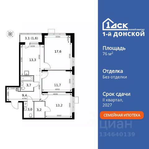 Прямая продажа от застройщика! Жилой Комплекс класса Комфорт Плюс. Продаётся 3-к квартира номер 678 общей площадью 76.7 кв.м. на 15-м этаже 24 этажного здания. Без отделки. Цена с учётом скидки. Особенности квартиры: - МЦД-5 в пешей доступности - Квартал с собственной набережной - Свои 2 детских сада и школа - Организуем показ в удобное для вас время! - Мастер-зона с гардеробной. Просторное место для отдыха и удобного хранения вещей. - Просторная спальня, в которой можно разместить большую кровать. - Угловая планировка - больше пространства для ваших идей. - Увеличенное количество окон - дополнительное освещение и свежий воздух. - Раздельный санузел - больше удобства для всех членов семьи. - Гардеробная - удобство для хранения и организации вещей. - Ниша под шкаф - компактное и удобное место для вещей. - Лоджия - уютное место для отдыха и тишины. Квартира без отделки. Чистый холст для воплощения интерьера вашей мечты. Информация о комплексе: ЖК "1-й Донской" в 7 км от МКАД: гармония городского комфорта и природы. Квартиры на 2-3 стороны света, форма секций и разная этажность создают динамичную архитектуру. Тёплая палитра фасадов и подсветка подчеркивают образ. Рядом - Ермолинский парк, Видновский лесопарк и Жуковский парк. Природа воздействует на все уровни восприятия: от видов до звуков и ароматов. Идеальный баланс для жизни в гармонии с окружающей средой. Транспортная доступность: Комплекс удобно расположен в 7 км от МКАД по трассе М-4 Дон (через Видное). Расстояние до Каширского шоссе составляет 12 км. Добраться до метро и центра Москвы позволяет развитая сеть маршрутов общественного наземного транспорта. Действующая ж/д станция Калинина Павелецкого направления в 15-17 минутах ходьбы (МЦД-5 в 2025-2026 гг). Внутренняя инфраструктура: "1-й Донской": продуманная среда в развивающемся районе. На территории - муниципальные школа и 2 детских сада, поликлиника, торговый центр с площадью для мероприятий. Сеть пешеходных маршрутов ведёт к магазинам и кафе, отделённым от дорог зелёными фито-стенами. Сквозные подъезды с панорамным остеклением и входами с улицы и двора наполнены светом. Всё для комфортной жизни в шаговой доступности, от повседневных нужд до общественных пространств. Квартира без отделки - чистый холст для вашего интерьера.