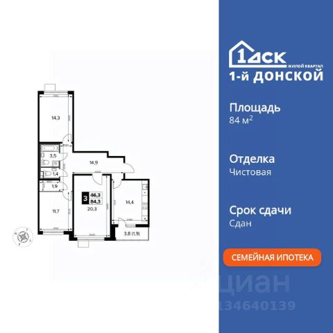 Прямая продажа от застройщика! Жилой Комплекс класса Комфорт Плюс. Продаётся 3-к квартира номер 69 общей площадью 84.3 кв.м. на 11-м этаже 24 этажного здания. Чистовая отделка. Цена с учётом скидки. Особенности квартиры: - МЦД-5 в пешей доступности - Квартал с собственной набережной - Свои 2 детских сада и школа - Организуем показ в удобное для вас время! - Просторная спальня, в которой можно разместить большую кровать. - Раздельный санузел - больше удобства для всех членов семьи. - Просторная кухня - место для семейных ужинов и кулинарных экспериментов. - Просторная мягкая зона - комфорт и уют для отдыха всей семьи. - Возможность добавить спальное место - дополнительный комфорт для гостей. - Гардеробная - удобство для хранения и организации вещей. - Ниша под шкаф - компактное и удобное место для вещей. - Лоджия - уютное место для отдыха и тишины. Квартира с чистовой отделкой. Раскройте свою индивидуальность в создании своего уникального проекта, а трудоемкий ремонт мы возьмем на себя! Вы идете в ногу со временем и предпочитаете современные, универсальные дизайнерские решения? Или вы любитель строгой лаконичной классики? Тогда наши интерьеры придутся вам по душе! Выбирайте то, что ближе лично Вам и реализуйте свои задумки вместе с нами! Информация о комплексе: ЖК "1-й Донской" в 7 км от МКАД: гармония городского комфорта и природы. Квартиры на 2-3 стороны света, форма секций и разная этажность создают динамичную архитектуру. Тёплая палитра фасадов и подсветка подчеркивают образ. Рядом - Ермолинский парк, Видновский лесопарк и Жуковский парк. Природа воздействует на все уровни восприятия: от видов до звуков и ароматов. Идеальный баланс для жизни в гармонии с окружающей средой. Транспортная доступность: Комплекс удобно расположен в 7 км от МКАД по трассе М-4 Дон (через Видное). Расстояние до Каширского шоссе составляет 12 км. Добраться до метро и центра Москвы позволяет развитая сеть маршрутов общественного наземного транспорта. Действующая ж/д станция Калинина Павелецкого направления в 15-17 минутах ходьбы (МЦД-5 в 2025-2026 гг). Внутренняя инфраструктура: "1-й Донской": продуманная среда в развивающемся районе. На территории - муниципальные школа и 2 детских сада, поликлиника, торговый центр с площадью для мероприятий. Сеть пешеходных маршрутов ведёт к магазинам и кафе, отделённым от дорог зелёными фито-стенами. Сквозные подъезды с панорамным остеклением и входами с улицы и двора наполнены светом. Всё для комфортной жизни в шаговой доступности, от повседневных нужд до общественных пространств. Квартира с чистовой отделкой: ваш стиль без ремонта. Выбирайте современный дизайн или классику - мы воплотим ваши идеи. Готовые интерьеры для уникального дома.
