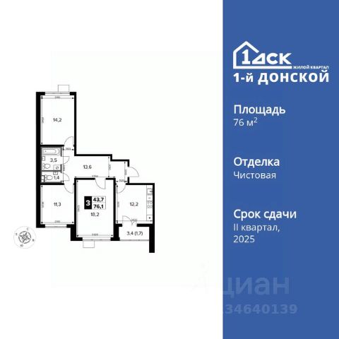 Прямая продажа от застройщика! Жилой Комплекс класса Комфорт Плюс. Продаётся 3-к квартира номер 129 общей площадью 76.1 кв.м. на 13-м этаже 21 этажного здания. Чистовая отделка. Цена с учётом скидки. Особенности квартиры: - МЦД-5 в пешей доступности - Квартал с собственной набережной - Свои 2 детских сада и школа - Просторная спальня, в которой можно разместить большую кровать. - Гостевой санузел - комфорт и удобство для ваших гостей. - Просторная мягкая зона - комфорт и уют для отдыха всей семьи. - Возможность добавить спальное место - дополнительный комфорт для гостей. - Ниша под шкаф - компактное и удобное место для вещей. - Лоджия - уютное место для отдыха и тишины. Информация о комплексе: Комплекс 1-й Донской расположен в 7 км от МКАД по трассе М-4 Дон. В нем сочетаются все плюсы комфортной городской среды и природного окружения. В проекте достаточно большой процент квартир, выходящих на 2-3 стороны света. Секции-маяки формируют у зданий визуальную L-форму, что придает застройке структуру и ритмику объемов. На ощущение динамики работает и разная этажность зданий. Теплая цветовая палитра фасадов отражает природу Дона. Вечерами дома преображаются благодаря архитектурной подсветке, выгодно выделяясь на городском фоне. Природа оказывает положительное влияние на человека на всех уровнях восприятия: через зрение, запахи, звуки, тактильные ощущения. Неподалеку от ЖК Первый Донской: Ермолинский парк, Видновский лесопарк, Жуковский парк Транспортная доступность: Комплекс удобно расположен в 7 км от МКАД по трассе М-4 Дон (через Видное). Расстояние до Каширского шоссе составляет 12 км. Добраться до метро и центра Москвы позволяет развитая сеть маршрутов общественного наземного транспорта. Действующая ж/д станция Калинина Павелецкого направления в 15-17 минутах ходьбы (МЦД-5 в 2025-2026 гг). Внутренняя инфраструктура: Проект 1-й Донской соседствует с бурно развивающимся районом, основная инфраструктура которого уже сложилась. В строительстве современных жилых комплексов в округе есть свои плюсы: здесь формируется продуманная и комфортная городская среда. Что касается внутренней инфраструктуры, на территории квартала будут расположены собственные муниципальные 2 детских садика и школа, которые помогут совместить приятное с полезным. Территория комплекса пронизана целой сетью живописных пешеходных маршрутов, позволяющих попасть в любой уголок района. Основные пути, как водится, "торговые". Они проходят вдоль магазинов, кафе и других представителей коммерции и отделяются от проезжей части зеленой "фито" - стеной. Среди крупных социальных объектов предусмотрены своя поликлиника и торговый центр с примыкающей площадью для общественных мероприятий. Уют начинается с продуманного подъезда. Сквозные подъезды наполнены светом благодаря сплошному остеклению. Вход в них есть и с улицы, и со двора.
