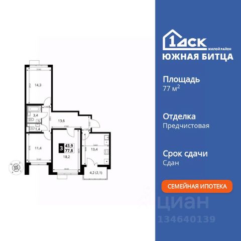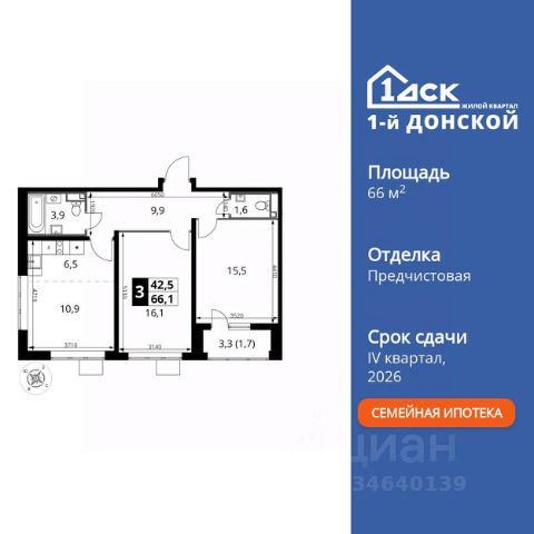 Прямая продажа от застройщика! Жилой Комплекс класса Комфорт Плюс. Продаётся 3-к квартира номер 811 общей площадью 66.1 кв.м. на 14-м этаже 24 этажного здания. Предчистовая отделка. Цена с учётом скидки. Особенности квартиры: - МЦД-5 в пешей доступности - Квартал с собственной набережной - Свои 2 детских сада и школа - Организуем показ в удобное для вас время! - Просторная спальня, в которой можно разместить большую кровать. - Угловая планировка - больше пространства для ваших идей. - Раздельный санузел - больше удобства для всех членов семьи. - Евроформат - просторное и удобное жилье с отличной планировкой. - Кухня-гостиная - идеальное пространство для встреч с близкими. - Лоджия - уютное место для отдыха и тишины. Квартира с предчистовой отделкой. Вам не придется заниматься черновыми и трудоёмкими работы, а чистовую отделку и дизайн - сделайте на свой вкус. Информация о комплексе: ЖК "1-й Донской" в 7 км от МКАД: гармония городского комфорта и природы. Квартиры на 2-3 стороны света, форма секций и разная этажность создают динамичную архитектуру. Тёплая палитра фасадов и подсветка подчеркивают образ. Рядом - Ермолинский парк, Видновский лесопарк и Жуковский парк. Природа воздействует на все уровни восприятия: от видов до звуков и ароматов. Идеальный баланс для жизни в гармонии с окружающей средой. Транспортная доступность: Комплекс удобно расположен в 7 км от МКАД по трассе М-4 Дон (через Видное). Расстояние до Каширского шоссе составляет 12 км. Добраться до метро и центра Москвы позволяет развитая сеть маршрутов общественного наземного транспорта. Действующая ж/д станция Калинина Павелецкого направления в 15-17 минутах ходьбы (МЦД-5 в 2025-2026 гг). Внутренняя инфраструктура: "1-й Донской": продуманная среда в развивающемся районе. На территории - муниципальные школа и 2 детских сада, поликлиника, торговый центр с площадью для мероприятий. Сеть пешеходных маршрутов ведёт к магазинам и кафе, отделённым от дорог зелёными фито-стенами. Сквозные подъезды с панорамным остеклением и входами с улицы и двора наполнены светом. Всё для комфортной жизни в шаговой доступности, от повседневных нужд до общественных пространств. Квартира с предчистовой отделкой - ваш дизайн без черновых работ