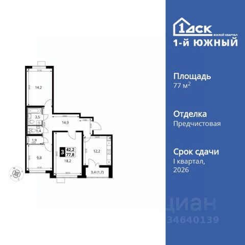 Прямая продажа от застройщика! Семейный жилой район класса Комфорт Плюс Продаётся 3-к квартира номер 309 общей площадью 83.7 кв.м. на 14-м этаже 22 этажного здания. Отделка Whitebox. Особенности квартиры: - Распашная планировка - отличное сочетание удобства и свободы. - Гостевой санузел - комфорт и удобство для ваших гостей. - Просторная кухня - место для семейных ужинов и кулинарных экспериментов. - Гардеробная - удобство для хранения и организации вещей. - Ниша под шкаф - компактное и удобное место для вещей. - Лоджия - уютное место для отдыха и тишины. Квартира с предчистовой отделкой (White box). Вам не придется заниматься черновыми и трудоёмкими работы, а чистовую отделку и дизайн - сделайте на свой вкус. Информация о комплексе: Сочетание свободного перемещения по внутреннней территории без машин и ощущения абсолютной безопасности благодаря надежным ограждениям - вот что отличает ЖК Южная Битца. На территории комплекса созданы все условия как для активного образа жизни, так и для спокойного времяпрепровождения. Свободно перемещайтесь по внутренней территории в безбарьерной среде! Продуманное зонирование во дворах позволяет отделить тихие зоны для родителей со спящими младенцами и тех, кто хочет почитать на свежем воздухе, от шумных игровых зон. Игровые зоны учитывают возраст детей. Площадки для детей старшего возраста вынесены за пределы дворов. Ощущение уютного дома должно начинаться с подъезда. Мы постарались предусмотреть все нюансы, чтобы наши лифты отвечали самым строгим современным требованиям. А наличие кладовых позволит вам поддерживать идеальный порядок и уют в вашей квартире! Транспортная доступность: В 3 км от МКАД в нескольких минутах езды до трех станций метро: Аннино, Бульвар Дмитрия Донского, улица Старокочаловская и станции МЦД2 - жд Бутово. Внутренняя инфраструктура: Для жителей жилого района "Южная Битца" доступна развитая инфраструктура близлежащих московских районов Чертаново, Южное, Бирюлёво Западное, Северное Бутово и Южное Бутово. Множество образовательных учреждений, объекты здравоохранения, торговые и развлекательные центры, кинотеатры, кафе, рестораны, парки.
