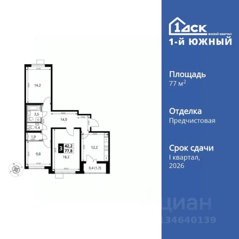 Прямая продажа от застройщика! Жилой Комплекс класса Комфорт Плюс. Продаётся 3-к квартира номер 310 общей площадью 76.4 кв.м. на 16-м этаже 25 этажного дома. Отделка Whitebox. Цена с учётом скидки! Особенности квартиры: - МЦД-5 в пешей доступности - Квартал с южным садом - Свои 3 детских сада и 2 большие школы - Просторная спальня, в которой можно разместить большую кровать. - Распашная планировка - отличное сочетание удобства и свободы. - Раздельный санузел - больше удобства для всех членов семьи. - Просторная кухня - место для семейных ужинов и кулинарных экспериментов. - Линейная кухня - функциональность и практичность в одном решении. - Лоджия - уютное место для отдыха и тишины. Квартира с предчистовой отделкой (White box). Вам не придется заниматься черновыми и трудоёмкими работы, а чистовую отделку и дизайн - сделайте на свой вкус. Информация о комплексе: Одно из преимуществ проектов 1- ДСК большие застекленные лоджии. Другое преимущество честный евро-формат. Во всем проекте предусмотрена система Умный дом. В состав устанавливаемого пакета устройств входит: WiFi реле для управления группами потребителей, беспроводной кран перекрытия с эл. приводом, беспроводной сенсор протечки, Яндекс Станция Мини. Его расположение можно назвать удачным за счет транспортной доступности и близости к природным объектам. По соседству лес, а в каждом дворе плодовые деревья. Весной квартал окутывает бело-розовое облако: это цветут яблони, груши, сливы. К августу в воздух наполняется ароматом созревших плодов. Зимой среди покрытых инеем деревьев протянулась лыжня. Транспортная доступность: - Общественный транспорт: Действующая ж/д станция Булатниково (в перспективе будущая МДЦ D5) в пешей доступности, всего 10-12 минут. - Личный автотранспорт: Удобный выезд на трассу М4-Дон в сторону Москвы и области 850 м, до МКАД - 1 км Внутренняя инфраструктура: Красивые продуманные подъезды - еще одно преимущество проекта 1-й Южный. Вход в сквозные подъезды есть и с улицы, и со двора. Благодаря сплошному остеклению в них всегда светло и уютно. Подъезды расположены на уровне земли, поэтому и молодым родителям с коляской, и жильцам с ограниченными возможностями вход и выход неудобств не доставят. В помещении предусмотрено место под стойку ресепшен с выводом инженерных сетей. Если жильцы решат на общем собрании, что необходим охранник или консьерж, организовать для них рабочее место можно быстро и с минимальными затратами. В подъездах предусмотрены уборные для детей и взрослых. Колясочные в каждом подъезде позволяют поддерживать порядок и чистоту на этажах. На случай прогулки с четвероногим питомцем в непогоду в подъездах устроены лапомойки. Во дворах и на общественных территориях 1-ого Южного столько всего интересного для юных обитателей. Собственные 3 детских сада и 2 больших школы буквально под окнами Изюминка проекта - пешеходный бульвар-дендрарий, он идеален для семейных прогулок. По сторонам прогулочной зоны разместились точки дл
