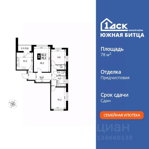 Прямая продажа от застройщика! Семейный жилой район класса Комфорт Плюс Продаётся 3-к квартира номер 701 общей площадью 78.3 кв.м. на 16-м этаже 23 этажного здания. Предчистовая отделка. Цена с учётом скидки. Особенности квартиры: - Организуем показ в удобное для вас время! - Окно в ванной - натуральное освещение для уюта и комфорта. - Увеличенное количество окон - дополнительное освещение и свежий воздух. - Просторная ванная - место для расслабления и уединения. - Гостевой санузел - комфорт и удобство для ваших гостей. - Просторная кухня - место для семейных ужинов и кулинарных экспериментов. - Гардеробная - удобство для хранения и организации вещей. - Ниша под шкаф - компактное и удобное место для вещей. - Лоджия - уютное место для отдыха и тишины. - Панорамное остекление лоджии - открывает вид на окружающий мир. Квартира с предчистовой отделкой. Вам не придется заниматься черновыми и трудоёмкими работы, а чистовую отделку и дизайн - сделайте на свой вкус. Информация о комплексе: ЖК "Южная Битца": безопасная территория без машин с продуманным зонированием. Тихие и игровые зоны разделены, дворы - безбарьерная среда для всех возрастов. Современные лифты и кладовые для порядка и уюта. Транспортная доступность: В 3 км от МКАД в нескольких минутах езды до трех станций метро: Аннино, Бульвар Дмитрия Донского, улица Старокочаловская и станции МЦД2 - ЖД Бутово. Внутренняя инфраструктура: Для жителей жилого района "Южная Битца" доступна развитая инфраструктура близлежащих московских районов Чертаново, Южное, Бирюлёво Западное, Северное Бутово и Южное Бутово. Множество образовательных учреждений, объекты здравоохранения, торговые и развлекательные центры, кинотеатры, кафе, рестораны, парки.