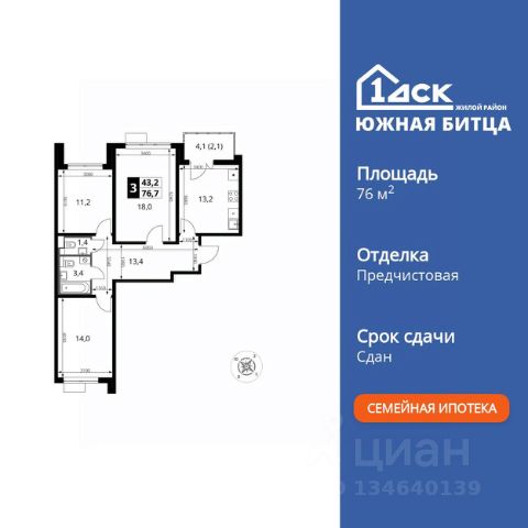 Прямая продажа от застройщика! Семейный жилой район класса Комфорт Плюс Продаётся 3-к квартира номер 310 общей площадью 75 кв.м. на 2-м этаже 20 этажного здания. Предчистовая отделка. Цена с учётом скидки. Особенности квартиры: - Организуем показ в удобное для вас время! - Гостевой санузел - комфорт и удобство для ваших гостей. - Просторная кухня - место для семейных ужинов и кулинарных экспериментов. - Ниша под шкаф - компактное и удобное место для вещей. - Лоджия - уютное место для отдыха и тишины. - Панорамное остекление лоджии - открывает вид на окружающий мир. Квартира с предчистовой отделкой. Вам не придется заниматься черновыми и трудоёмкими работы, а чистовую отделку и дизайн - сделайте на свой вкус. Информация о комплексе: ЖК "Южная Битца": безопасная территория без машин с продуманным зонированием. Тихие и игровые зоны разделены, дворы - безбарьерная среда для всех возрастов. Современные лифты и кладовые для порядка и уюта. Транспортная доступность: В 3 км от МКАД в нескольких минутах езды до трех станций метро: Аннино, Бульвар Дмитрия Донского, улица Старокочаловская и станции МЦД2 - ЖД Бутово. Внутренняя инфраструктура: Для жителей жилого района "Южная Битца" доступна развитая инфраструктура близлежащих московских районов Чертаново, Южное, Бирюлёво Западное, Северное Бутово и Южное Бутово. Множество образовательных учреждений, объекты здравоохранения, торговые и развлекательные центры, кинотеатры, кафе, рестораны, парки.