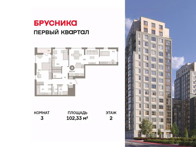 Продаётся с кладовой. Квартира с кухней-гостиной и тремя спальнями в "Первом квартале". Особенности планировки: вид во двор, гардеробная, лоджия, мастер-спальня, постирочная, предчистовая отделка, разнесённые спальни. квартиры в нашей базе: МТК02-Ж4.2.5.