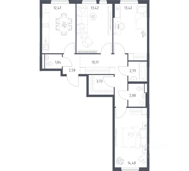 В квартире остается вся мебель, техника, кухня, за исключением пылесоса, телевизора, холодильника и отпаривателя. Также уедут кресло из комнаты и пуфик из коридора.