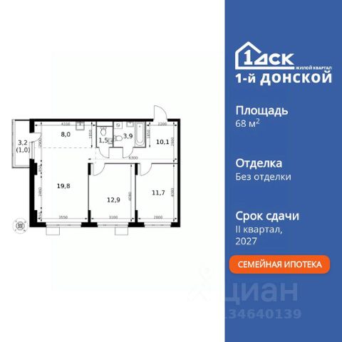 Прямая продажа от застройщика! Жилой Комплекс класса Комфорт Плюс. Продаётся 3-к квартира номер 304 общей площадью 68.9 кв.м. на 6-м этаже 24 этажного здания. Без отделки. Цена с учётом скидки. Особенности квартиры: - МЦД-5 в пешей доступности - Квартал с собственной набережной - Свои 2 детских сада и школа - Организуем показ в удобное для вас время! - Просторная спальня, в которой можно разместить большую кровать. - Угловая планировка - больше пространства для ваших идей. - Раздельный санузел - больше удобства для всех членов семьи. - Евроформат - просторное и удобное жилье с отличной планировкой. - Кухня-гостиная - идеальное пространство для встреч с близкими. - Ниша под шкаф - компактное и удобное место для вещей. - Балкон - открытое пространство для отдыха. Квартира без отделки. Чистый холст для воплощения интерьера вашей мечты. Информация о комплексе: ЖК "1-й Донской" в 7 км от МКАД: гармония городского комфорта и природы. Квартиры на 2-3 стороны света, форма секций и разная этажность создают динамичную архитектуру. Тёплая палитра фасадов и подсветка подчеркивают образ. Рядом - Ермолинский парк, Видновский лесопарк и Жуковский парк. Природа воздействует на все уровни восприятия: от видов до звуков и ароматов. Идеальный баланс для жизни в гармонии с окружающей средой. Транспортная доступность: Комплекс удобно расположен в 7 км от МКАД по трассе М-4 Дон (через Видное). Расстояние до Каширского шоссе составляет 12 км. Добраться до метро и центра Москвы позволяет развитая сеть маршрутов общественного наземного транспорта. Действующая ж/д станция Калинина Павелецкого направления в 15-17 минутах ходьбы (МЦД-5 в 2025-2026 гг). Внутренняя инфраструктура: "1-й Донской": продуманная среда в развивающемся районе. На территории - муниципальные школа и 2 детских сада, поликлиника, торговый центр с площадью для мероприятий. Сеть пешеходных маршрутов ведёт к магазинам и кафе, отделённым от дорог зелёными фито-стенами. Сквозные подъезды с панорамным остеклением и входами с улицы и двора наполнены светом. Всё для комфортной жизни в шаговой доступности, от повседневных нужд до общественных пространств. Квартира без отделки - чистый холст для вашего интерьера.