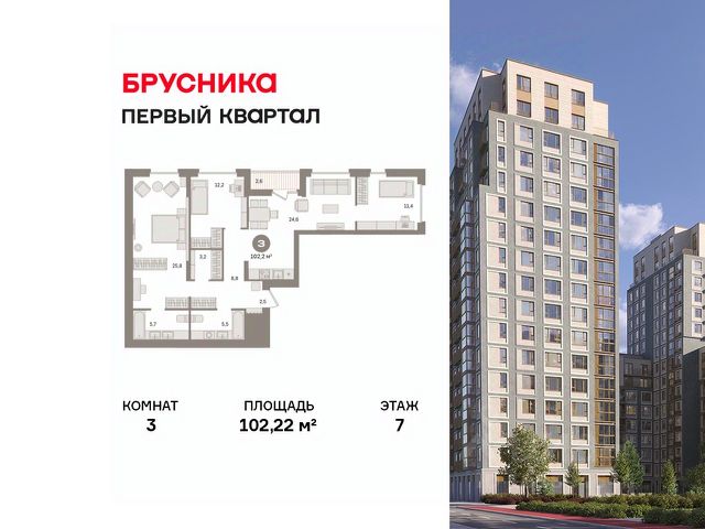 Квартира с кухней-гостиной и тремя спальнями в "Первом квартале". Особенности планировки: балкон, без отделки, второй санузел, гардеробная, двухуровневая, окна на две стороны, разнесённые спальни, терраса, терраса на крыше. Квартиру можно купить онлайн. В квартире выполнена отделка "под чистовую". Установлены окна с двойным стеклопакетом, радиаторы отопления с терморегуляторами. На полу цементно-песчаная стяжка. В квартиры заведены кабели для интернета и ТВ. Входная сейф-дверь не требует замены. Организован поквартирный учёт энергоресурсов (водоснабжение, отопление, электричество). Дом сдается во 2 квартале 2024 года. Проект "Первый квартал" строится в подмосковном городе "Видное" 6 км от МКАД. Рядом с проектом находится остановка общественного транспорта. Маршрутные такси едут до станций метро "Домодедовская", "Кантемировская", "Аннино". От ж/д ст. "Расторгуево" 30 минут до центра Москвы. Застройщик компания Брусника. Собственная инфраструктура "Первого квартала" включает в себя общеобразовательную школу, детский сад, а также магазины, предприятия услуг и офисные помещения, располагающиеся на первых этажах зданий. В шаговой доступности находятся: четыре школы, Видновская гимназия, начальная школа "Созвездие", супермаркеты "Пятерочка", "Перекресток" и "Виктория", рынок "Красный камень", бассейн "Дельфин". Объявление от застройщика. Ипотека, материнский капитал, военная ипотека. Обмен (или Trade-in) — один из способов. Обмен подойдёт, если вы хотите поменять старую квартиру на новую с большей или равной площадью. Получить одобрение ипотеки или рассрочку, а также осуществить обмен квартиры можно онлайн. Запишитесь на онлайн презентацию по телефону или на сайте. квартиры в нашей базе: ПК6-ГП6-3-3.7.1.