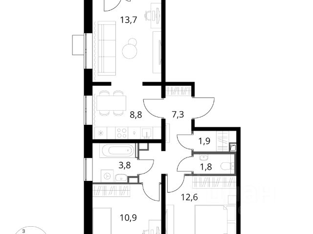 Квартира с кухней-гостиной и тремя спальнями в "Первом квартале". Особенности планировки: окна на две стороны, второй санузел, гардеробная, без отделки, двухуровневая, тёплая лоджия, лоджия, разнесённые спальни, терраса, терраса на крыше. Квартиру можно купить онлайн. В квартире выполнена отделка "под чистовую". Установлены окна с двойным стеклопакетом, радиаторы отопления с терморегуляторами. На полу цементно-песчаная стяжка. В квартиры заведены кабели для интернета и ТВ. Входная сейф-дверь не требует замены. Организован поквартирный учёт энергоресурсов (водоснабжение, отопление, электричество). Дом сдается во 2 квартале 2024 года. Проект "Первый квартал" строится в подмосковном городе "Видное" 6 км от МКАД. Рядом с проектом находится остановка общественного транспорта. Маршрутные такси едут до станций метро "Домодедовская", "Кантемировская", "Аннино". От ж/д ст. "Расторгуево" 30 минут до центра Москвы. Застройщик компания Брусника. Собственная инфраструктура "Первого квартала" включает в себя общеобразовательную школу, детский сад, а также магазины, предприятия услуг и офисные помещения, располагающиеся на первых этажах зданий. В шаговой доступности находятся: четыре школы, Видновская гимназия, начальная школа "Созвездие", супермаркеты "Пятерочка", "Перекресток" и "Виктория", рынок "Красный камень", бассейн "Дельфин". Объявление от застройщика. Ипотека, материнский капитал, военная ипотека. Обмен (или Trade-in) — один из способов. Обмен подойдёт, если вы хотите поменять старую квартиру на новую с большей или равной площадью. Получить одобрение ипотеки или рассрочку, а также осуществить обмен квартиры можно онлайн. Запишитесь на онлайн презентацию по телефону или на сайте. квартиры в нашей базе: ПК6-ГП6-4-4.9.2.
