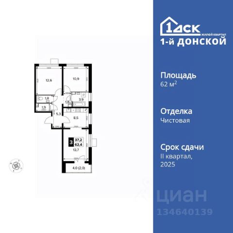 Прямая продажа от застройщика! Жилой Комплекс класса Комфорт Плюс. Продаётся 3-к квартира номер 23 общей площадью 62.4 кв.м. на 5-м этаже 24 этажного дома. Чистовая отделка. Цена с учётом скидки! Особенности квартиры: - МЦД-5 в пешей доступности - Квартал с собственной набережной - Свои 2 детских сада и школа - Просторная спальня, в которой можно разместить большую кровать. - Угловая планировка - больше пространства для ваших идей. - Окно в ванной - натуральное освещение для уюта и комфорта. - Раздельный санузел - больше удобства для всех членов семьи. - Евроформат - просторное и удобное жилье с отличной планировкой. - Просторная мягкая зона - комфорт и уют для отдыха всей семьи. - Кухня-гостиная - идеальное пространство для встреч с близкими. - Возможность добавить спальное место - дополнительный комфорт для гостей. - Гардеробная - удобство для хранения и организации вещей. - Ниша под шкаф - компактное и удобное место для вещей. - Просторная лоджия - идеальное место для уютных вечеров. Информация о комплексе: Комплекс 1-й Донской расположен в 7 км от МКАД по трассе М-4 Дон. В нем сочетаются все плюсы комфортной городской среды и природного окружения. В проекте достаточно большой процент квартир, выходящих на 2-3 стороны света. Секции-маяки формируют у зданий визуальную L-форму, что придает застройке структуру и ритмику объемов. На ощущение динамики работает и разная этажность зданий. Теплая цветовая палитра фасадов отражает природу Дона. Вечерами дома преображаются благодаря архитектурной подсветке, выгодно выделяясь на городском фоне. Природа оказывает положительное влияние на человека на всех уровнях восприятия: через зрение, запахи, звуки, тактильные ощущения. Неподалеку от ЖК Первый Донской: Ермолинский парк, Видновский лесопарк, Жуковский парк Транспортная доступность: Комплекс удобно расположен в 7 км от МКАД по трассе М-4 Дон (через Видное). Расстояние до Каширского шоссе составляет 12 км. Добраться до метро и центра Москвы позволяет развитая сеть маршрутов общественного наземного транспорта. Действующая ж/д станция Калинина Павелецкого направления в 15-17 минутах ходьбы (МЦД-5 в 2025-2026 гг). Внутренняя инфраструктура: Проект 1-й Донской соседствует с бурно развивающимся районом, основная инфраструктура которого уже сложилась. В строительстве современных жилых комплексов в округе есть свои плюсы: здесь формируется продуманная и комфортная городская среда. Что касается внутренней инфраструктуры, на территории квартала будут расположены собственные муниципальные 2 детских садика и школа, которые помогут совместить приятное с полезным. Территория комплекса пронизана целой сетью живописных пешеходных маршрутов, позволяющих попасть в любой уголок района. Основные пути, как водится, "торговые". Они проходят вдоль магазинов, кафе и других представителей коммерции и отделяются от проезжей части зеленой "фито" - стеной. Среди крупных социальных объектов предусмотрены своя поликлиника и торговый центр с