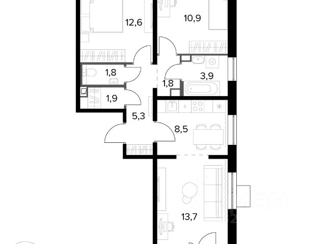 Свободная продажа, возможна ипотека, квартира без обременений, без мат. капитала, один взрослый собственник. Юридически свободная. Первичная продажа 3-комн. квартиры с дизайнерским ремонтом!