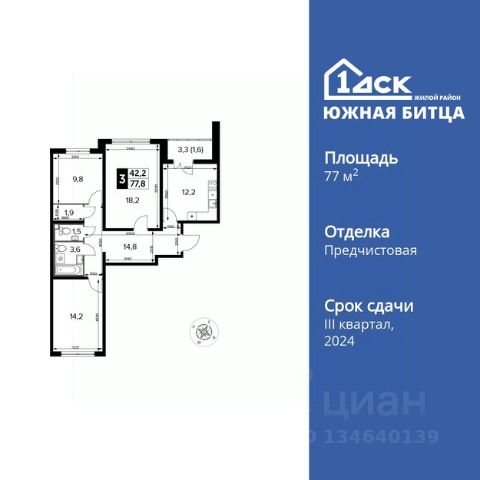 Прямая продажа от застройщика! Семейный жилой район класса Комфорт Плюс Продаётся 3-к квартира номер 248 общей площадью 77.6 кв.м. на 22-м этаже 22 этажного здания. Отделка Whitebox. Цена с учётом скидки. Особенности квартиры: - Гостевой санузел - комфорт и удобство для ваших гостей. - Увеличенная высота потолков - ощущение простора и легкости. - Просторная кухня - место для семейных ужинов и кулинарных экспериментов. - Гардеробная - удобство для хранения и организации вещей. - Ниша под шкаф - компактное и удобное место для вещей. - Лоджия - уютное место для отдыха и тишины. - Панорамное остекление лоджии - открывает вид на окружающий мир. Квартира с предчистовой отделкой (White box). Вам не придется заниматься черновыми и трудоёмкими работы, а чистовую отделку и дизайн - сделайте на свой вкус. Информация о комплексе: Сочетание свободного перемещения по внутреннней территории без машин и ощущения абсолютной безопасности благодаря надежным ограждениям - вот что отличает ЖК Южная Битца. На территории комплекса созданы все условия как для активного образа жизни, так и для спокойного времяпрепровождения. Свободно перемещайтесь по внутренней территории в безбарьерной среде! Продуманное зонирование во дворах позволяет отделить тихие зоны для родителей со спящими младенцами и тех, кто хочет почитать на свежем воздухе, от шумных игровых зон. Игровые зоны учитывают возраст детей. Площадки для детей старшего возраста вынесены за пределы дворов. Ощущение уютного дома должно начинаться с подъезда. Мы постарались предусмотреть все нюансы, чтобы наши лифты отвечали самым строгим современным требованиям. А наличие кладовых позволит вам поддерживать идеальный порядок и уют в вашей квартире! Транспортная доступность: В 3 км от МКАД в нескольких минутах езды до трех станций метро: Аннино, Бульвар Дмитрия Донского, улица Старокочаловская и станции МЦД2 - жд Бутово. Внутренняя инфраструктура: Для жителей жилого района "Южная Битца" доступна развитая инфраструктура близлежащих московских районов Чертаново, Южное, Бирюлёво Западное, Северное Бутово и Южное Бутово. Множество образовательных учреждений, объекты здравоохранения, торговые и развлекательные центры, кинотеатры, кафе, рестораны, парки.
