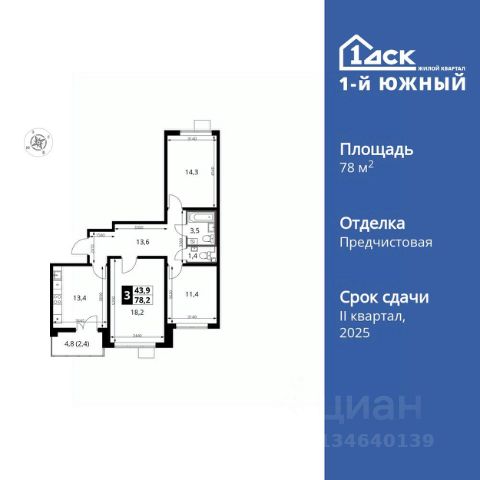 Прямая продажа от застройщика! Жилой Комплекс класса Комфорт Плюс. Продаётся 3-к квартира номер 229 общей площадью 78.2 кв.м. на 24-м этаже 24 этажного здания. Отделка Whitebox. Цена с учётом скидки. Особенности квартиры: - МЦД-5 в пешей доступности - Квартал с южным садом - Свои 3 детских сада и 2 большие школы - Просторная спальня, в которой можно разместить большую кровать. - Распашная планировка - отличное сочетание удобства и свободы. - Гостевой санузел - комфорт и удобство для ваших гостей. - Просторная кухня - место для семейных ужинов и кулинарных экспериментов. - Просторная мягкая зона - комфорт и уют для отдыха всей семьи. - Возможность добавить спальное место - дополнительный комфорт для гостей. - Ниша под шкаф - компактное и удобное место для вещей. - Просторная лоджия - идеальное место для уютных вечеров. Квартира с предчистовой отделкой (White box). Вам не придется заниматься черновыми и трудоёмкими работы, а чистовую отделку и дизайн - сделайте на свой вкус. Информация о комплексе: Одно из преимуществ проектов 1- ДСК большие застекленные лоджии. Другое преимущество честный евро-формат. Во всем проекте предусмотрена система Умный дом. В состав устанавливаемого пакета устройств входит: WiFi реле для управления группами потребителей, беспроводной кран перекрытия с эл. приводом, беспроводной сенсор протечки, Яндекс Станция Мини. Его расположение можно назвать удачным за счет транспортной доступности и близости к природным объектам. По соседству лес, а в каждом дворе плодовые деревья. Весной квартал окутывает бело-розовое облако: это цветут яблони, груши, сливы. К августу в воздух наполняется ароматом созревших плодов. Зимой среди покрытых инеем деревьев протянулась лыжня. Транспортная доступность: - Общественный транспорт: Действующая ж/д станция Булатниково (в перспективе будущая МДЦ D5) в пешей доступности, всего 10-12 минут. - Личный автотранспорт: Удобный выезд на трассу М4-Дон в сторону Москвы и области 850 м, до МКАД - 1 км Внутренняя инфраструктура: Красивые продуманные подъезды - еще одно преимущество проекта 1-й Южный. Вход в сквозные подъезды есть и с улицы, и со двора. Благодаря сплошному остеклению в них всегда светло и уютно. Подъезды расположены на уровне земли, поэтому и молодым родителям с коляской, и жильцам с ограниченными возможностями вход и выход неудобств не доставят. В помещении предусмотрено место под стойку ресепшен с выводом инженерных сетей. Если жильцы решат на общем собрании, что необходим охранник или консьерж, организовать для них рабочее место можно быстро и с минимальными затратами. В подъездах предусмотрены уборные для детей и взрослых. Колясочные в каждом подъезде позволяют поддерживать порядок и чистоту на этажах. На случай прогулки с четвероногим питомцем в непогоду в подъездах устроены лапомойки. Во дворах и на общественных территориях 1-ого Южного столько всего интересного для юных обитателей. Собственные 3 детских сада и 2 больших школы буквально под о