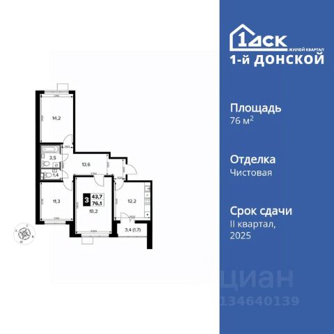 Прямая продажа от застройщика! Жилой Комплекс класса Комфорт Плюс. Продаётся 3-к квартира номер 129 общей площадью 76.1 кв.м. на 13-м этаже 21 этажного дома. Чистовая отделка. Цена с учётом скидки! Особенности квартиры: - МЦД-5 в пешей доступности - Квартал с собственной набережной - Свои 2 детских сада и школа - Просторная спальня, в которой можно разместить большую кровать. - Гостевой санузел - комфорт и удобство для ваших гостей. - Просторная мягкая зона - комфорт и уют для отдыха всей семьи. - Возможность добавить спальное место - дополнительный комфорт для гостей. - Ниша под шкаф - компактное и удобное место для вещей. - Лоджия - уютное место для отдыха и тишины. Информация о комплексе: Комплекс 1-й Донской расположен в 7 км от МКАД по трассе М-4 Дон. В нем сочетаются все плюсы комфортной городской среды и природного окружения. В проекте достаточно большой процент квартир, выходящих на 2-3 стороны света. Секции-маяки формируют у зданий визуальную L-форму, что придает застройке структуру и ритмику объемов. На ощущение динамики работает и разная этажность зданий. Теплая цветовая палитра фасадов отражает природу Дона. Вечерами дома преображаются благодаря архитектурной подсветке, выгодно выделяясь на городском фоне. Природа оказывает положительное влияние на человека на всех уровнях восприятия: через зрение, запахи, звуки, тактильные ощущения. Неподалеку от ЖК Первый Донской: Ермолинский парк, Видновский лесопарк, Жуковский парк Транспортная доступность: Комплекс удобно расположен в 7 км от МКАД по трассе М-4 Дон (через Видное). Расстояние до Каширского шоссе составляет 12 км. Добраться до метро и центра Москвы позволяет развитая сеть маршрутов общественного наземного транспорта. Действующая ж/д станция Калинина Павелецкого направления в 15-17 минутах ходьбы (МЦД-5 в 2025-2026 гг). Внутренняя инфраструктура: Проект 1-й Донской соседствует с бурно развивающимся районом, основная инфраструктура которого уже сложилась. В строительстве современных жилых комплексов в округе есть свои плюсы: здесь формируется продуманная и комфортная городская среда. Что касается внутренней инфраструктуры, на территории квартала будут расположены собственные муниципальные 2 детских садика и школа, которые помогут совместить приятное с полезным. Территория комплекса пронизана целой сетью живописных пешеходных маршрутов, позволяющих попасть в любой уголок района. Основные пути, как водится, "торговые". Они проходят вдоль магазинов, кафе и других представителей коммерции и отделяются от проезжей части зеленой "фито" - стеной. Среди крупных социальных объектов предусмотрены своя поликлиника и торговый центр с примыкающей площадью для общественных мероприятий. Уют начинается с продуманного подъезда. Сквозные подъезды наполнены светом благодаря сплошному остеклению. Вход в них есть и с улицы, и со двора.