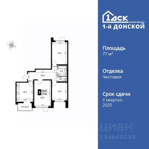 Прямая продажа от застройщика! Жилой Комплекс класса Комфорт Плюс. Продаётся 3-к квартира номер 387 общей площадью 77.9 кв.м. на 23-м этаже 24 этажного дома. Отделка Whitebox. Цена с учётом скидки! Особенности квартиры: - МЦД-5 в пешей доступности - Квартал с собственной набережной - Свои 2 детских сада и школа - Просторная спальня, в которой можно разместить большую кровать. - Гостевой санузел - комфорт и удобство для ваших гостей. - Просторная кухня - место для семейных ужинов и кулинарных экспериментов. - Просторная мягкая зона - комфорт и уют для отдыха всей семьи. - Возможность добавить спальное место - дополнительный комфорт для гостей. - Гардеробная - удобство для хранения и организации вещей. - Ниша под шкаф - компактное и удобное место для вещей. - Лоджия - уютное место для отдыха и тишины. Квартира с предчистовой отделкой (White box). Вам не придется заниматься черновыми и трудоёмкими работы, а чистовую отделку и дизайн - сделайте на свой вкус. Информация о комплексе: Комплекс 1-й Донской расположен в 7 км от МКАД по трассе М-4 Дон. В нем сочетаются все плюсы комфортной городской среды и природного окружения. В проекте достаточно большой процент квартир, выходящих на 2-3 стороны света. Секции-маяки формируют у зданий визуальную L-форму, что придает застройке структуру и ритмику объемов. На ощущение динамики работает и разная этажность зданий. Теплая цветовая палитра фасадов отражает природу Дона. Вечерами дома преображаются благодаря архитектурной подсветке, выгодно выделяясь на городском фоне. Природа оказывает положительное влияние на человека на всех уровнях восприятия: через зрение, запахи, звуки, тактильные ощущения. Неподалеку от ЖК Первый Донской: Ермолинский парк, Видновский лесопарк, Жуковский парк Транспортная доступность: Комплекс удобно расположен в 7 км от МКАД по трассе М-4 Дон (через Видное). Расстояние до Каширского шоссе составляет 12 км. Добраться до метро и центра Москвы позволяет развитая сеть маршрутов общественного наземного транспорта. Действующая ж/д станция Калинина Павелецкого направления в 15-17 минутах ходьбы (МЦД-5 в 2025-2026 гг). Внутренняя инфраструктура: Проект 1-й Донской соседствует с бурно развивающимся районом, основная инфраструктура которого уже сложилась. В строительстве современных жилых комплексов в округе есть свои плюсы: здесь формируется продуманная и комфортная городская среда. Что касается внутренней инфраструктуры, на территории квартала будут расположены собственные муниципальные 2 детских садика и школа, которые помогут совместить приятное с полезным. Территория комплекса пронизана целой сетью живописных пешеходных маршрутов, позволяющих попасть в любой уголок района. Основные пути, как водится, "торговые". Они проходят вдоль магазинов, кафе и других представителей коммерции и отделяются от проезжей части зеленой "фито" - стеной. Среди крупных социальных объектов предусмотрены своя поликлиника и торговый центр с примыкающей площадью для обществ