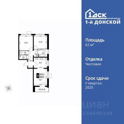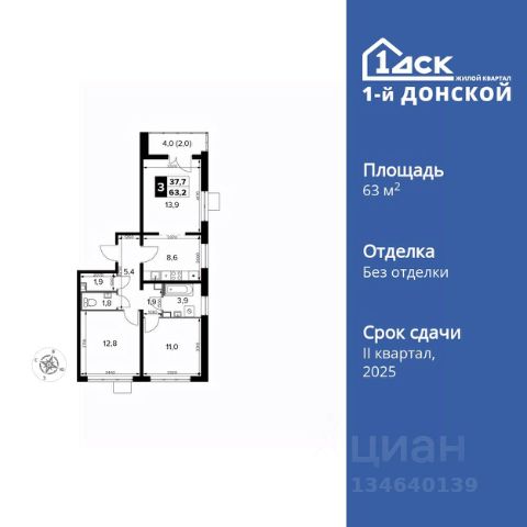 Прямая продажа от застройщика! Жилой Комплекс класса Комфорт Плюс. Продаётся 3-к квартира номер 135 общей площадью 63.2 кв.м. на 21-м этаже 24 этажного дома. Чистовая отделка. Цена с учётом скидки! Особенности квартиры: - МЦД-5 в пешей доступности - Квартал с собственной набережной - Свои 2 детских сада и школа - Просторная спальня, в которой можно разместить большую кровать. - Угловая планировка - больше пространства для ваших идей. - Окно в ванной - натуральное освещение для уюта и комфорта. - Раздельный санузел - больше удобства для всех членов семьи. - Евроформат - просторное и удобное жилье с отличной планировкой. - Просторная мягкая зона - комфорт и уют для отдыха всей семьи. - Кухня-гостиная - идеальное пространство для встреч с близкими. - Возможность добавить спальное место - дополнительный комфорт для гостей. - Гардеробная - удобство для хранения и организации вещей. - Ниша под шкаф - компактное и удобное место для вещей. - Просторная лоджия - идеальное место для уютных вечеров. Информация о комплексе: Комплекс 1-й Донской расположен в 7 км от МКАД по трассе М-4 Дон. В нем сочетаются все плюсы комфортной городской среды и природного окружения. В проекте достаточно большой процент квартир, выходящих на 2-3 стороны света. Секции-маяки формируют у зданий визуальную L-форму, что придает застройке структуру и ритмику объемов. На ощущение динамики работает и разная этажность зданий. Теплая цветовая палитра фасадов отражает природу Дона. Вечерами дома преображаются благодаря архитектурной подсветке, выгодно выделяясь на городском фоне. Природа оказывает положительное влияние на человека на всех уровнях восприятия: через зрение, запахи, звуки, тактильные ощущения. Неподалеку от ЖК Первый Донской: Ермолинский парк, Видновский лесопарк, Жуковский парк Транспортная доступность: Комплекс удобно расположен в 7 км от МКАД по трассе М-4 Дон (через Видное). Расстояние до Каширского шоссе составляет 12 км. Добраться до метро и центра Москвы позволяет развитая сеть маршрутов общественного наземного транспорта. Действующая ж/д станция Калинина Павелецкого направления в 15-17 минутах ходьбы (МЦД-5 в 2025-2026 гг). Внутренняя инфраструктура: Проект 1-й Донской соседствует с бурно развивающимся районом, основная инфраструктура которого уже сложилась. В строительстве современных жилых комплексов в округе есть свои плюсы: здесь формируется продуманная и комфортная городская среда. Что касается внутренней инфраструктуры, на территории квартала будут расположены собственные муниципальные 2 детских садика и школа, которые помогут совместить приятное с полезным. Территория комплекса пронизана целой сетью живописных пешеходных маршрутов, позволяющих попасть в любой уголок района. Основные пути, как водится, "торговые". Они проходят вдоль магазинов, кафе и других представителей коммерции и отделяются от проезжей части зеленой "фито" - стеной. Среди крупных социальных объектов предусмотрены своя поликлиника и торговый центр