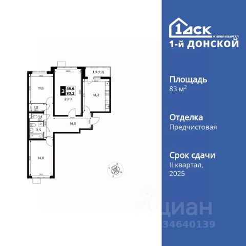 Прямая продажа от застройщика! Жилой Комплекс класса Комфорт Плюс. Продаётся 3-к квартира номер 376 общей площадью 83.2 кв.м. на 9-м этаже 24 этажного дома. Отделка Whitebox. Цена с учётом скидки! Особенности квартиры: - МЦД-5 в пешей доступности - Квартал с собственной набережной - Свои 2 детских сада и школа - Просторная спальня, в которой можно разместить большую кровать. - Гостевой санузел - комфорт и удобство для ваших гостей. - Просторная кухня - место для семейных ужинов и кулинарных экспериментов. - Просторная мягкая зона - комфорт и уют для отдыха всей семьи. - Гардеробная - удобство для хранения и организации вещей. - Ниша под шкаф - компактное и удобное место для вещей. - Лоджия - уютное место для отдыха и тишины. Квартира с предчистовой отделкой (White box). Вам не придется заниматься черновыми и трудоёмкими работы, а чистовую отделку и дизайн - сделайте на свой вкус. Информация о комплексе: Комплекс 1-й Донской расположен в 7 км от МКАД по трассе М-4 Дон. В нем сочетаются все плюсы комфортной городской среды и природного окружения. В проекте достаточно большой процент квартир, выходящих на 2-3 стороны света. Секции-маяки формируют у зданий визуальную L-форму, что придает застройке структуру и ритмику объемов. На ощущение динамики работает и разная этажность зданий. Теплая цветовая палитра фасадов отражает природу Дона. Вечерами дома преображаются благодаря архитектурной подсветке, выгодно выделяясь на городском фоне. Природа оказывает положительное влияние на человека на всех уровнях восприятия: через зрение, запахи, звуки, тактильные ощущения. Неподалеку от ЖК Первый Донской: Ермолинский парк, Видновский лесопарк, Жуковский парк Транспортная доступность: Комплекс удобно расположен в 7 км от МКАД по трассе М-4 Дон (через Видное). Расстояние до Каширского шоссе составляет 12 км. Добраться до метро и центра Москвы позволяет развитая сеть маршрутов общественного наземного транспорта. Действующая ж/д станция Калинина Павелецкого направления в 15-17 минутах ходьбы (МЦД-5 в 2025-2026 гг). Внутренняя инфраструктура: Проект 1-й Донской соседствует с бурно развивающимся районом, основная инфраструктура которого уже сложилась. В строительстве современных жилых комплексов в округе есть свои плюсы: здесь формируется продуманная и комфортная городская среда. Что касается внутренней инфраструктуры, на территории квартала будут расположены собственные муниципальные 2 детских садика и школа, которые помогут совместить приятное с полезным. Территория комплекса пронизана целой сетью живописных пешеходных маршрутов, позволяющих попасть в любой уголок района. Основные пути, как водится, "торговые". Они проходят вдоль магазинов, кафе и других представителей коммерции и отделяются от проезжей части зеленой "фито" - стеной. Среди крупных социальных объектов предусмотрены своя поликлиника и торговый центр с примыкающей площадью для общественных мероприятий. Уют начинается с продуманного подъезда. Сквозные подъезд