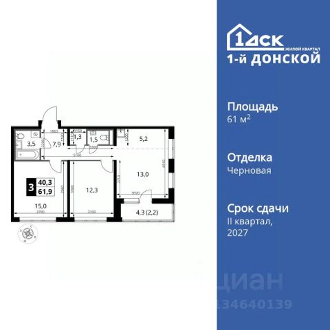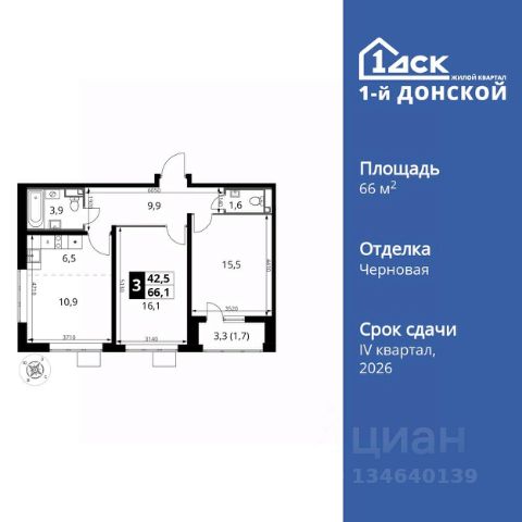 Квартира с кухней-гостиной и тремя спальнями в "Первом квартале". Особенности планировки: окна на две стороны, второй санузел, гардеробная, без отделки, двухуровневая, тёплая лоджия, лоджия, разнесённые спальни, мастер-спальня, терраса, терраса на крыше.