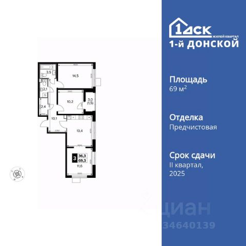 Квартира с кухней-гостиной и тремя спальнями в "Первом квартале". Особенности планировки: окна на две стороны, второй санузел, гардеробная, без отделки, двухуровневая, тёплая лоджия, лоджия, разнесённые спальни, мастер-спальня, терраса, терраса на крыше.