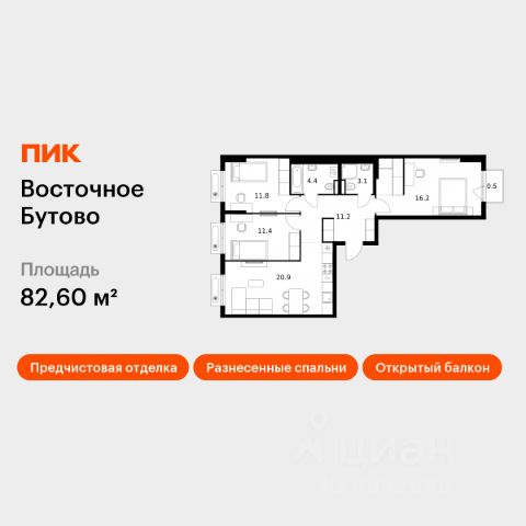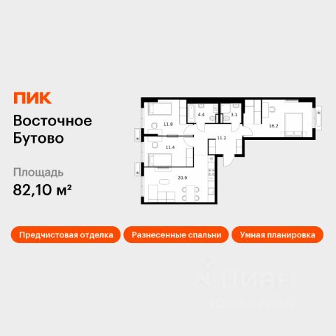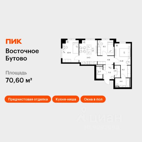 Продаётся 3-комн. квартира площадью 70,6 кв.м на 18 этаже 25 этажного дома (Корпус 55, Секция 1) проекта ПИК Восточное Бутово. Светлый просторный подъезд на уровне земли, функциональная планировка, большие окна, предчистовая отделка. Жилой квартал "Восточное Бутово" расположен в 5 км от МКАД по Симферопольскому шоссе, в Ленинском районе Московской области. Это экологически благоприятное место по соседству с Бутовским лесопарком. В 25 минутах на машине - станции метро и МЦД "Бутово". В "Восточном Бутово" уже открылись пять детских садов из десяти запланированных и одна школа из четырёх. Внутри квартала будет две поликлиники, одна из которых уже работает. В проекте два пешеходных бульвара - по одному из них уже можно гулять и кататься на велосипеде. В закрытых дворах-парках не будет автомобилей - мы построим многоуровневый паркинг, чтобы сделать район ещё более комфортным и безопасным для жителей. Артикул 1044269 (Застройщик ООО "Лотан")
