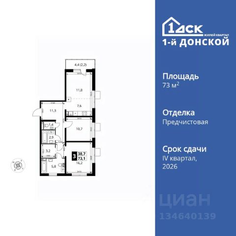 Прямая продажа от застройщика. Продаётся 3-комнатная квартира общей площадью 81.10 м² с предчистовой отделкой в ЖК "У реки. Эко Видное 2.0" на 16-м этаже 17 этажного корпуса Левитан. Все корпуса введены в эксплуатацию. Выдача ключей - II кв. 2025г. Семнадцатиэтажный корпус "Левитан" состоит из 13 секций, образующих в плане закрытый периметр двора. Эко-повестка и комфорт — это формат осознанной жизни, разработанный "Бюро А4" для благоустройства корпуса "Левитан". В проекте развиваются две темы: образ реки и настроения пейзажей Левитана которые раскрываются через четыре функциональные зоны. ЖК "У реки" — жилой микрорайон в Ленинском районе Подмосковья, в городе Видное. Архитектурные решения проекта разработаны бюро ADM, которое известно своими работами по созданию элитных объектов в столице. В проекте реализована продуманная европейская концепция благоустройства, включающая прогулочную набережную. О проекте: - 5 корпусов переменной этажности); - 8 км от МКАД, 30 минут до метро "Домодедовская", в 2025 года запланировано открытие станции МЦД-5 (дорога по Павелецкого вокзала займёт 30 минут); - Безопасные дворы с детскими и спортивными площадками для разных возрастов; - Собственная набережная с променадом, местами для пикников и рыбалки; - Два детских сада и школа на территории; - Развитая инфраструктура района; Компания MR предлагает своим клиентам специальные условия приобретения квартир в рамках программ ипотечного кредитования от банков-партнеров. Купить 3-комнатную квартиру с отделкой в деревне Сапроново Московской области.