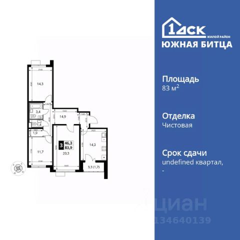 • ✓ В базе Циан 25 3-комнатных квартир с дизайнерским ремонтом в поселке Битца Московской области