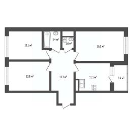 - 3 изолированные комнаты (спальни/детские/кабинет и т.д. по Вашему желанию): 12,1; 13,8 и 16,2 кв. метров,