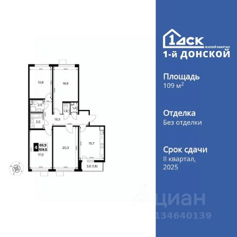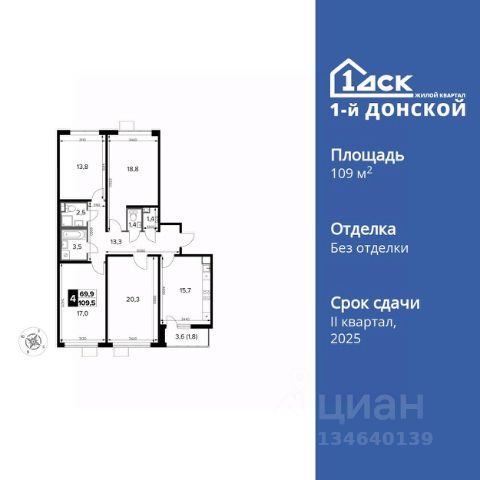 Прямая продажа от застройщика! Жилой Комплекс класса Комфорт Плюс. Продаётся 4-к квартира номер 238 общей площадью 109.5 кв.м. на 14-м этаже 24 этажного здания. Отделка Whitebox. Цена с учётом скидки. Особенности квартиры: - МЦД-5 в пешей доступности - Квартал с собственной набережной - Свои 2 детских сада и школа - Просторная спальня, в которой можно разместить большую кровать. - Гостевой санузел - комфорт и удобство для ваших гостей. - Раздельный санузел - больше удобства для всех членов семьи. - Просторная кухня - место для семейных ужинов и кулинарных экспериментов. - Просторная мягкая зона - комфорт и уют для отдыха всей семьи. - Возможность добавить спальное место - дополнительный комфорт для гостей. - Гардеробная - удобство для хранения и организации вещей. - Ниша под шкаф - компактное и удобное место для вещей. - Лоджия - уютное место для отдыха и тишины. Квартира с предчистовой отделкой (White box). Вам не придется заниматься черновыми и трудоёмкими работы, а чистовую отделку и дизайн - сделайте на свой вкус. Информация о комплексе: Комплекс 1-й Донской расположен в 7 км от МКАД по трассе М-4 Дон. В нем сочетаются все плюсы комфортной городской среды и природного окружения. В проекте достаточно большой процент квартир, выходящих на 2-3 стороны света. Секции-маяки формируют у зданий визуальную L-форму, что придает застройке структуру и ритмику объемов. На ощущение динамики работает и разная этажность зданий. Теплая цветовая палитра фасадов отражает природу Дона. Вечерами дома преображаются благодаря архитектурной подсветке, выгодно выделяясь на городском фоне. Природа оказывает положительное влияние на человека на всех уровнях восприятия: через зрение, запахи, звуки, тактильные ощущения. Неподалеку от ЖК Первый Донской: Ермолинский парк, Видновский лесопарк, Жуковский парк Транспортная доступность: Комплекс удобно расположен в 7 км от МКАД по трассе М-4 Дон (через Видное). Расстояние до Каширского шоссе составляет 12 км. Добраться до метро и центра Москвы позволяет развитая сеть маршрутов общественного наземного транспорта. Действующая ж/д станция Калинина Павелецкого направления в 15-17 минутах ходьбы (МЦД-5 в 2025-2026 гг). Внутренняя инфраструктура: Проект 1-й Донской соседствует с бурно развивающимся районом, основная инфраструктура которого уже сложилась. В строительстве современных жилых комплексов в округе есть свои плюсы: здесь формируется продуманная и комфортная городская среда. Что касается внутренней инфраструктуры, на территории квартала будут расположены собственные муниципальные 2 детских садика и школа, которые помогут совместить приятное с полезным. Территория комплекса пронизана целой сетью живописных пешеходных маршрутов, позволяющих попасть в любой уголок района. Основные пути, как водится, "торговые". Они проходят вдоль магазинов, кафе и других представителей коммерции и отделяются от проезжей части зеленой "фито" - стеной. Среди крупных социальных объектов предусмотрены св