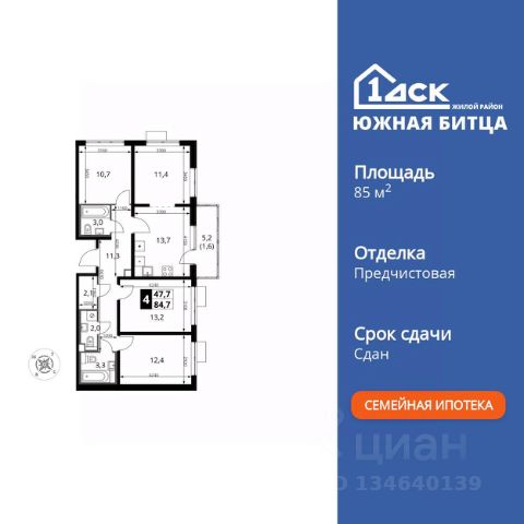 Прямая продажа от застройщика! Жилой Комплекс класса Комфорт Плюс. Продаётся 4-к квартира номер 46 общей площадью 87.8 кв.м. на 6-м этаже 24 этажного здания. Без отделки. Цена с учётом скидки. Особенности квартиры: - МЦД-5 в пешей доступности - Квартал с собственной набережной - Свои 2 детских сада и школа - Организуем показ в удобное для вас время! - Мастер-зона с санузлом. Уют и комфорт в одном пространстве. - Угловая планировка - больше пространства для ваших идей. - Раздельный санузел - больше удобства для всех членов семьи. - Евроформат - просторное и удобное жилье с отличной планировкой. - Кухня-гостиная - идеальное пространство для встреч с близкими. - Балкон - открытое пространство для отдыха. Квартира без отделки. Чистый холст для воплощения интерьера вашей мечты. Информация о комплексе: ЖК "1-й Донской" в 7 км от МКАД: гармония городского комфорта и природы. Квартиры на 2-3 стороны света, форма секций и разная этажность создают динамичную архитектуру. Тёплая палитра фасадов и подсветка подчеркивают образ. Рядом - Ермолинский парк, Видновский лесопарк и Жуковский парк. Природа воздействует на все уровни восприятия: от видов до звуков и ароматов. Идеальный баланс для жизни в гармонии с окружающей средой. Транспортная доступность: Комплекс удобно расположен в 7 км от МКАД по трассе М-4 Дон (через Видное). Расстояние до Каширского шоссе составляет 12 км. Добраться до метро и центра Москвы позволяет развитая сеть маршрутов общественного наземного транспорта. Действующая ж/д станция Калинина Павелецкого направления в 15-17 минутах ходьбы (МЦД-5 в 2025-2026 гг). Внутренняя инфраструктура: "1-й Донской": продуманная среда в развивающемся районе. На территории - муниципальные школа и 2 детских сада, поликлиника, торговый центр с площадью для мероприятий. Сеть пешеходных маршрутов ведёт к магазинам и кафе, отделённым от дорог зелёными фито-стенами. Сквозные подъезды с панорамным остеклением и входами с улицы и двора наполнены светом. Всё для комфортной жизни в шаговой доступности, от повседневных нужд до общественных пространств. Квартира без отделки - чистый холст для вашего интерьера.