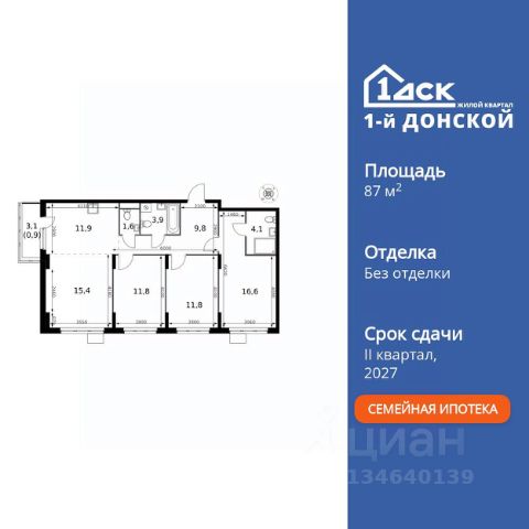 Прямая продажа от застройщика! Жилой Комплекс класса Комфорт Плюс. Продаётся 4-к квартира номер 57 общей площадью 87.8 кв.м. на 7-м этаже 24 этажного здания. Без отделки. Цена с учётом скидки. Особенности квартиры: - МЦД-5 в пешей доступности - Квартал с собственной набережной - Свои 2 детских сада и школа - Организуем показ в удобное для вас время! - Мастер-зона с санузлом. Уют и комфорт в одном пространстве. - Угловая планировка - больше пространства для ваших идей. - Раздельный санузел - больше удобства для всех членов семьи. - Евроформат - просторное и удобное жилье с отличной планировкой. - Кухня-гостиная - идеальное пространство для встреч с близкими. - Балкон - открытое пространство для отдыха. Квартира без отделки. Чистый холст для воплощения интерьера вашей мечты. Информация о комплексе: ЖК "1-й Донской" в 7 км от МКАД: гармония городского комфорта и природы. Квартиры на 2-3 стороны света, форма секций и разная этажность создают динамичную архитектуру. Тёплая палитра фасадов и подсветка подчеркивают образ. Рядом - Ермолинский парк, Видновский лесопарк и Жуковский парк. Природа воздействует на все уровни восприятия: от видов до звуков и ароматов. Идеальный баланс для жизни в гармонии с окружающей средой. Транспортная доступность: Комплекс удобно расположен в 7 км от МКАД по трассе М-4 Дон (через Видное). Расстояние до Каширского шоссе составляет 12 км. Добраться до метро и центра Москвы позволяет развитая сеть маршрутов общественного наземного транспорта. Действующая ж/д станция Калинина Павелецкого направления в 15-17 минутах ходьбы (МЦД-5 в 2025-2026 гг). Внутренняя инфраструктура: "1-й Донской": продуманная среда в развивающемся районе. На территории - муниципальные школа и 2 детских сада, поликлиника, торговый центр с площадью для мероприятий. Сеть пешеходных маршрутов ведёт к магазинам и кафе, отделённым от дорог зелёными фито-стенами. Сквозные подъезды с панорамным остеклением и входами с улицы и двора наполнены светом. Всё для комфортной жизни в шаговой доступности, от повседневных нужд до общественных пространств. Квартира без отделки - чистый холст для вашего интерьера.