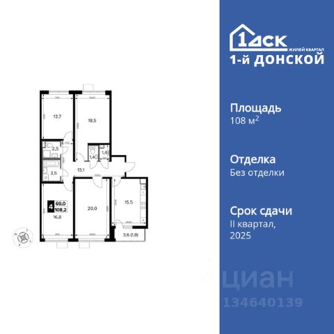 Прямая продажа от застройщика! Жилой Комплекс класса Комфорт Плюс. Продаётся 4-к квартира номер 202 общей площадью 108.2 кв.м. на 8-м этаже 24 этажного дома. Отделка Whitebox. Цена с учётом скидки! Особенности квартиры: - МЦД-5 в пешей доступности - Квартал с собственной набережной - Свои 2 детских сада и школа - Просторная спальня, в которой можно разместить большую кровать. - Гостевой санузел - комфорт и удобство для ваших гостей. - Раздельный санузел - больше удобства для всех членов семьи. - Просторная кухня - место для семейных ужинов и кулинарных экспериментов. - Просторная мягкая зона - комфорт и уют для отдыха всей семьи. - Возможность добавить спальное место - дополнительный комфорт для гостей. - Гардеробная - удобство для хранения и организации вещей. - Ниша под шкаф - компактное и удобное место для вещей. - Лоджия - уютное место для отдыха и тишины. Квартира с предчистовой отделкой (White box). Вам не придется заниматься черновыми и трудоёмкими работы, а чистовую отделку и дизайн - сделайте на свой вкус. Информация о комплексе: Комплекс 1-й Донской расположен в 7 км от МКАД по трассе М-4 Дон. В нем сочетаются все плюсы комфортной городской среды и природного окружения. В проекте достаточно большой процент квартир, выходящих на 2-3 стороны света. Секции-маяки формируют у зданий визуальную L-форму, что придает застройке структуру и ритмику объемов. На ощущение динамики работает и разная этажность зданий. Теплая цветовая палитра фасадов отражает природу Дона. Вечерами дома преображаются благодаря архитектурной подсветке, выгодно выделяясь на городском фоне. Природа оказывает положительное влияние на человека на всех уровнях восприятия: через зрение, запахи, звуки, тактильные ощущения. Неподалеку от ЖК Первый Донской: Ермолинский парк, Видновский лесопарк, Жуковский парк Транспортная доступность: Комплекс удобно расположен в 7 км от МКАД по трассе М-4 Дон (через Видное). Расстояние до Каширского шоссе составляет 12 км. Добраться до метро и центра Москвы позволяет развитая сеть маршрутов общественного наземного транспорта. Действующая ж/д станция Калинина Павелецкого направления в 15-17 минутах ходьбы (МЦД-5 в 2025-2026 гг). Внутренняя инфраструктура: Проект 1-й Донской соседствует с бурно развивающимся районом, основная инфраструктура которого уже сложилась. В строительстве современных жилых комплексов в округе есть свои плюсы: здесь формируется продуманная и комфортная городская среда. Что касается внутренней инфраструктуры, на территории квартала будут расположены собственные муниципальные 2 детских садика и школа, которые помогут совместить приятное с полезным. Территория комплекса пронизана целой сетью живописных пешеходных маршрутов, позволяющих попасть в любой уголок района. Основные пути, как водится, "торговые". Они проходят вдоль магазинов, кафе и других представителей коммерции и отделяются от проезжей части зеленой "фито" - стеной. Среди крупных социальных объектов предусмотрены своя
