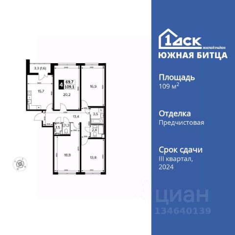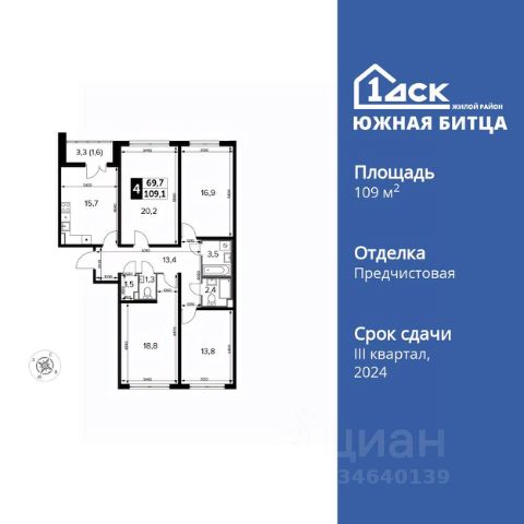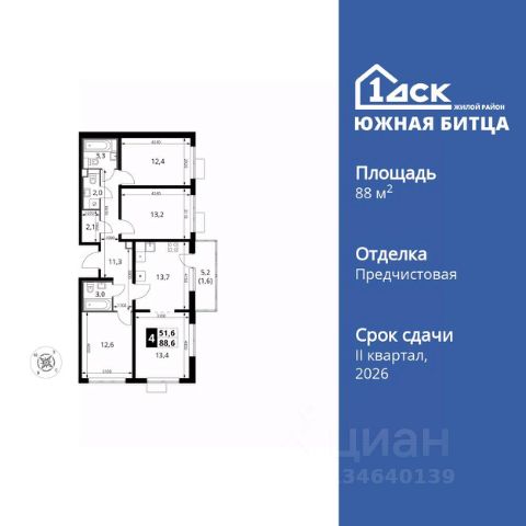 Прямая продажа от застройщика! Семейный жилой район класса Комфорт Плюс Продаётся 4-к квартира номер 509 общей площадью 108.3 кв.м. на 2-м этаже 23 этажного здания. Отделка Whitebox. Цена с учётом скидки. Особенности квартиры: - Гостевой санузел - комфорт и удобство для ваших гостей. - Душ помимо ванной - дополнительное удобство для вашей семьи. - Раздельный санузел - больше удобства для всех членов семьи. - Просторная кухня - место для семейных ужинов и кулинарных экспериментов. - Гардеробная - удобство для хранения и организации вещей. - Ниша под шкаф - компактное и удобное место для вещей. - Лоджия - уютное место для отдыха и тишины. - Панорамное остекление лоджии - открывает вид на окружающий мир. Квартира с предчистовой отделкой (White box). Вам не придется заниматься черновыми и трудоёмкими работы, а чистовую отделку и дизайн - сделайте на свой вкус. Информация о комплексе: Сочетание свободного перемещения по внутреннней территории без машин и ощущения абсолютной безопасности благодаря надежным ограждениям - вот что отличает ЖК Южная Битца. На территории комплекса созданы все условия как для активного образа жизни, так и для спокойного времяпрепровождения. Свободно перемещайтесь по внутренней территории в безбарьерной среде! Продуманное зонирование во дворах позволяет отделить тихие зоны для родителей со спящими младенцами и тех, кто хочет почитать на свежем воздухе, от шумных игровых зон. Игровые зоны учитывают возраст детей. Площадки для детей старшего возраста вынесены за пределы дворов. Ощущение уютного дома должно начинаться с подъезда. Мы постарались предусмотреть все нюансы, чтобы наши лифты отвечали самым строгим современным требованиям. А наличие кладовых позволит вам поддерживать идеальный порядок и уют в вашей квартире! Транспортная доступность: В 3 км от МКАД в нескольких минутах езды до трех станций метро: Аннино, Бульвар Дмитрия Донского, улица Старокочаловская и станции МЦД2 - жд Бутово. Внутренняя инфраструктура: Для жителей жилого района "Южная Битца" доступна развитая инфраструктура близлежащих московских районов Чертаново, Южное, Бирюлёво Западное, Северное Бутово и Южное Бутово. Множество образовательных учреждений, объекты здравоохранения, торговые и развлекательные центры, кинотеатры, кафе, рестораны, парки.