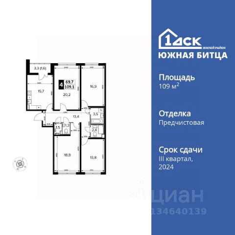Прямая продажа от застройщика! Семейный жилой район класса Комфорт Плюс Продаётся 4-к квартира номер 509 общей площадью 108.3 кв.м. на 2-м этаже 23 этажного здания. Отделка Whitebox. Цена с учётом скидки. Особенности квартиры: - Гостевой санузел - комфорт и удобство для ваших гостей. - Душ помимо ванной - дополнительное удобство для вашей семьи. - Раздельный санузел - больше удобства для всех членов семьи. - Просторная кухня - место для семейных ужинов и кулинарных экспериментов. - Гардеробная - удобство для хранения и организации вещей. - Ниша под шкаф - компактное и удобное место для вещей. - Лоджия - уютное место для отдыха и тишины. - Панорамное остекление лоджии - открывает вид на окружающий мир. Квартира с предчистовой отделкой (White box). Вам не придется заниматься черновыми и трудоёмкими работы, а чистовую отделку и дизайн - сделайте на свой вкус. Информация о комплексе: Сочетание свободного перемещения по внутреннней территории без машин и ощущения абсолютной безопасности благодаря надежным ограждениям - вот что отличает ЖК Южная Битца. На территории комплекса созданы все условия как для активного образа жизни, так и для спокойного времяпрепровождения. Свободно перемещайтесь по внутренней территории в безбарьерной среде! Продуманное зонирование во дворах позволяет отделить тихие зоны для родителей со спящими младенцами и тех, кто хочет почитать на свежем воздухе, от шумных игровых зон. Игровые зоны учитывают возраст детей. Площадки для детей старшего возраста вынесены за пределы дворов. Ощущение уютного дома должно начинаться с подъезда. Мы постарались предусмотреть все нюансы, чтобы наши лифты отвечали самым строгим современным требованиям. А наличие кладовых позволит вам поддерживать идеальный порядок и уют в вашей квартире! Транспортная доступность: В 3 км от МКАД в нескольких минутах езды до трех станций метро: Аннино, Бульвар Дмитрия Донского, улица Старокочаловская и станции МЦД2 - жд Бутово. Внутренняя инфраструктура: Для жителей жилого района "Южная Битца" доступна развитая инфраструктура близлежащих московских районов Чертаново, Южное, Бирюлёво Западное, Северное Бутово и Южное Бутово. Множество образовательных учреждений, объекты здравоохранения, торговые и развлекательные центры, кинотеатры, кафе, рестораны, парки. 4-комнатная квартира в новостройке в поселке Битца Московской области.