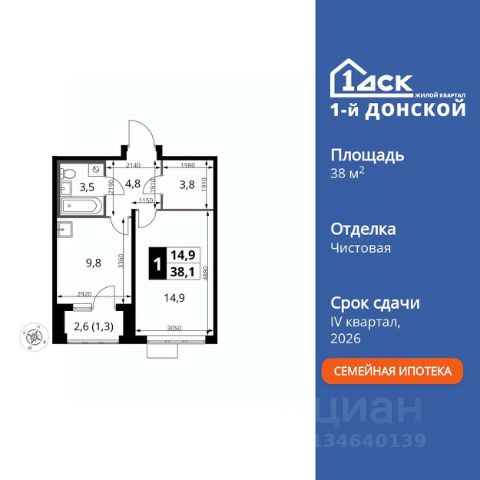 Прямая продажа от застройщика! Жилой Комплекс класса Комфорт Плюс. Продаётся 2-к квартира номер 61 общей площадью 59.4 кв.м. на 9-м этаже 14 этажного здания. Отделка Whitebox. Цена с учётом скидки. Особенности квартиры: - МЦД-5 в пешей доступности - Квартал с собственной набережной - Свои 2 детских сада и школа - Просторная спальня, в которой можно разместить большую кровать. - Раздельный санузел - больше удобства для всех членов семьи. - Просторная кухня - место для семейных ужинов и кулинарных экспериментов. - Просторная мягкая зона - комфорт и уют для отдыха всей семьи. - Возможность добавить спальное место - дополнительный комфорт для гостей. - Гардеробная - удобство для хранения и организации вещей. - Лоджия - уютное место для отдыха и тишины. Квартира с предчистовой отделкой (White box). Вам не придется заниматься черновыми и трудоёмкими работы, а чистовую отделку и дизайн - сделайте на свой вкус. Информация о комплексе: Комплекс 1-й Донской расположен в 7 км от МКАД по трассе М-4 Дон. В нем сочетаются все плюсы комфортной городской среды и природного окружения. В проекте достаточно большой процент квартир, выходящих на 2-3 стороны света. Секции-маяки формируют у зданий визуальную L-форму, что придает застройке структуру и ритмику объемов. На ощущение динамики работает и разная этажность зданий. Теплая цветовая палитра фасадов отражает природу Дона. Вечерами дома преображаются благодаря архитектурной подсветке, выгодно выделяясь на городском фоне. Природа оказывает положительное влияние на человека на всех уровнях восприятия: через зрение, запахи, звуки, тактильные ощущения. Неподалеку от ЖК Первый Донской: Ермолинский парк, Видновский лесопарк, Жуковский парк Транспортная доступность: Комплекс удобно расположен в 7 км от МКАД по трассе М-4 Дон (через Видное). Расстояние до Каширского шоссе составляет 12 км. Добраться до метро и центра Москвы позволяет развитая сеть маршрутов общественного наземного транспорта. Действующая ж/д станция Калинина Павелецкого направления в 15-17 минутах ходьбы (МЦД-5 в 2025-2026 гг). Внутренняя инфраструктура: Проект 1-й Донской соседствует с бурно развивающимся районом, основная инфраструктура которого уже сложилась. В строительстве современных жилых комплексов в округе есть свои плюсы: здесь формируется продуманная и комфортная городская среда. Что касается внутренней инфраструктуры, на территории квартала будут расположены собственные муниципальные 2 детских садика и школа, которые помогут совместить приятное с полезным. Территория комплекса пронизана целой сетью живописных пешеходных маршрутов, позволяющих попасть в любой уголок района. Основные пути, как водится, "торговые". Они проходят вдоль магазинов, кафе и других представителей коммерции и отделяются от проезжей части зеленой "фито" - стеной. Среди крупных социальных объектов предусмотрены своя поликлиника и торговый центр с примыкающей площадью для общественных мероприятий. Уют начинается с продуманного по
