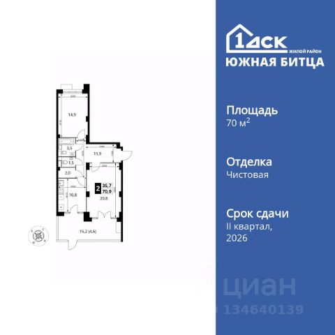 Прямая продажа от застройщика! Семейный жилой район класса Комфорт Плюс Продаётся 2-к квартира номер 345 общей площадью 70 кв.м. на 1-м этаже 22 этажного дома. Чистовая отделка. Особенности квартиры: - Распашная планировка - отличное сочетание удобства и свободы. - Гостевой санузел - комфорт и удобство для ваших гостей. - Дополнительный вход - удобство для семьи и гостей. - Увеличенная высота потолков - ощущение простора и легкости. - Просторная кухня - место для семейных ужинов и кулинарных экспериментов. - Гардеробная - удобство для хранения и организации вещей. - Ниша под шкаф - компактное и удобное место для вещей. - Терраса - место для загара и вечерних посиделок. Информация о комплексе: Сочетание свободного перемещения по внутреннней территории без машин и ощущения абсолютной безопасности благодаря надежным ограждениям - вот что отличает ЖК Южная Битца. На территории комплекса созданы все условия как для активного образа жизни, так и для спокойного времяпрепровождения. Свободно перемещайтесь по внутренней территории в безбарьерной среде! Продуманное зонирование во дворах позволяет отделить тихие зоны для родителей со спящими младенцами и тех, кто хочет почитать на свежем воздухе, от шумных игровых зон. Игровые зоны учитывают возраст детей. Площадки для детей старшего возраста вынесены за пределы дворов. Ощущение уютного дома должно начинаться с подъезда. Мы постарались предусмотреть все нюансы, чтобы наши лифты отвечали самым строгим современным требованиям. А наличие кладовых позволит вам поддерживать идеальный порядок и уют в вашей квартире! Транспортная доступность: В 3 км от МКАД в нескольких минутах езды до трех станций метро: Аннино, Бульвар Дмитрия Донского, улица Старокочаловская и станции МЦД2 - жд Бутово. Внутренняя инфраструктура: Для жителей жилого района "Южная Битца" доступна развитая инфраструктура близлежащих московских районов Чертаново, Южное, Бирюлёво Западное, Северное Бутово и Южное Бутово. Множество образовательных учреждений, объекты здравоохранения, торговые и развлекательные центры, кинотеатры, кафе, рестораны, парки.